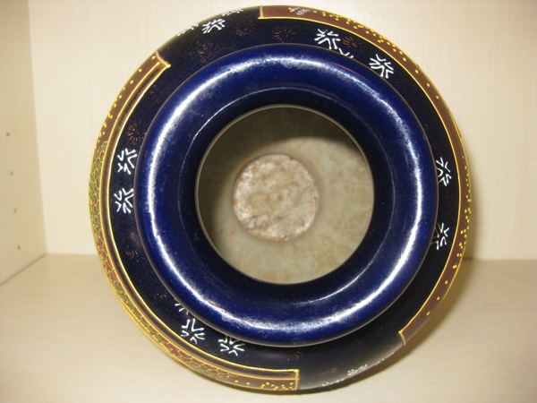 Gold, apparently hand painted "made in japan" on the bottom, with orange japanese writing