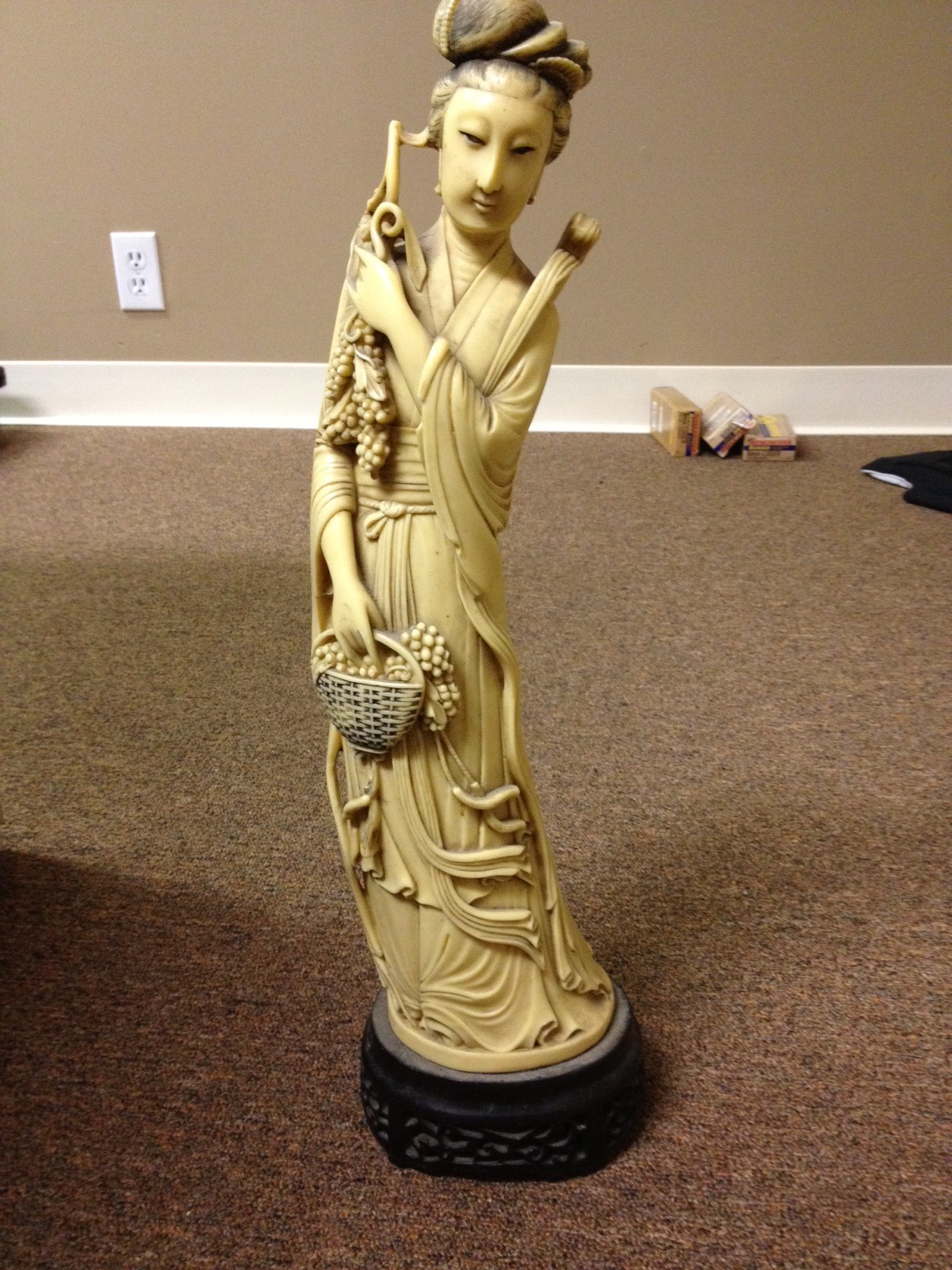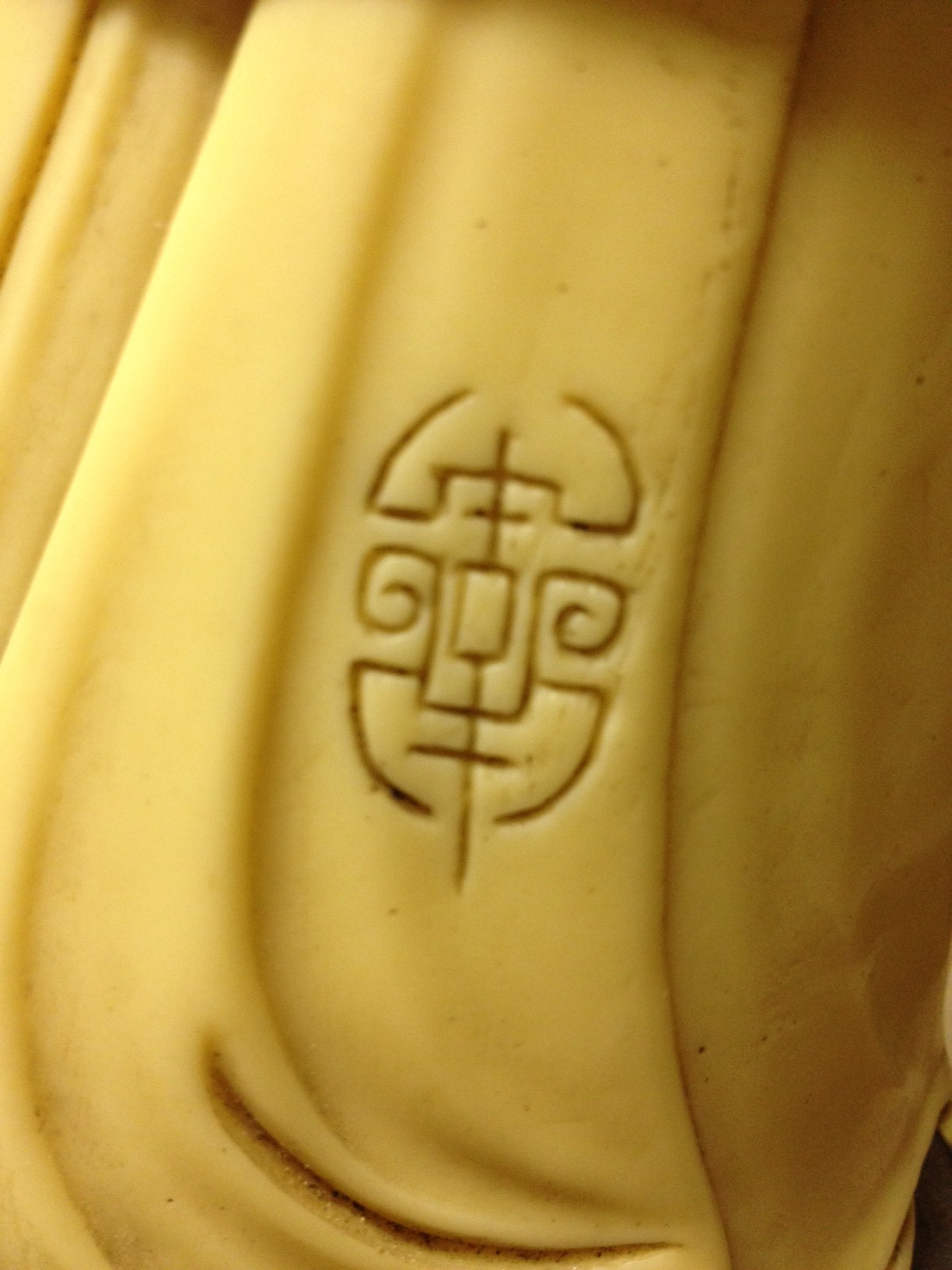 Would someone please be able to advise me of the value of this statue? It is approximately 20 inches tall and weighs about 7.5 lbs. The pictures below show the statue, the artist's marking on the back and a medallion on the bottom of the stand. Any information is greatly apprecitated.