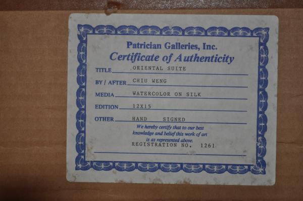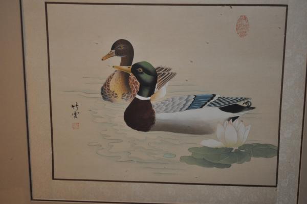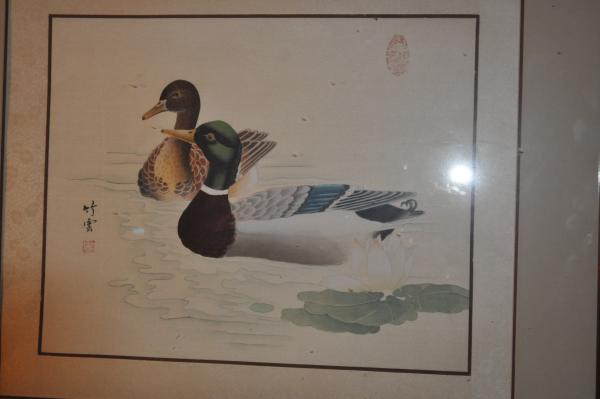 this is a painting of watercolor on silk that I have had in my house for years. I would like to know more about it. It is done by the artist Chen Wang. It is of 2 ducks on a pond with a water lily. It has a signature done in chinese in black with a red square below it with something written in it. It also has an oval stamp on the right upper side. It is in a frame. the whold picture itself is in excellant conditaion