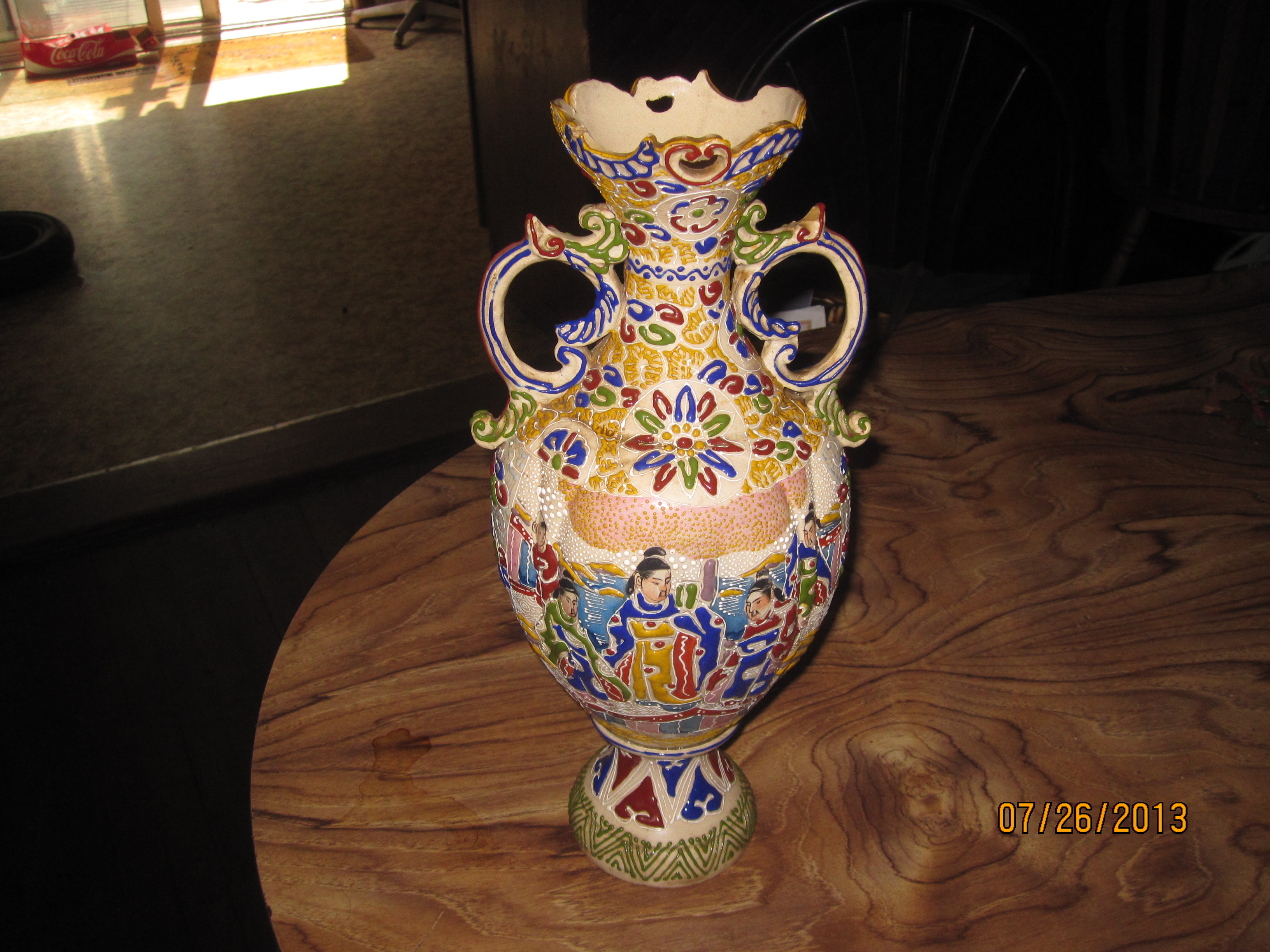 my dad got this vase about 70+ yrs ago from a church rectory in chicago, they were going to throw it out , so he asked if he could have it. i have no idea of it's value, hope you can help   THANK YOU