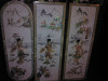 These are a set of four and we have them up on our wall. They are birds made out of some sort of materials (stone? plastic? I have no idea) mounted on a shiny black background (laquered black paint maybe) with golden paint on them and black wood border. There is no artist's signature anywhere nor any identifying marks on the back (just solid black paint). I'm hoping someone could point me in the right direction with my research.