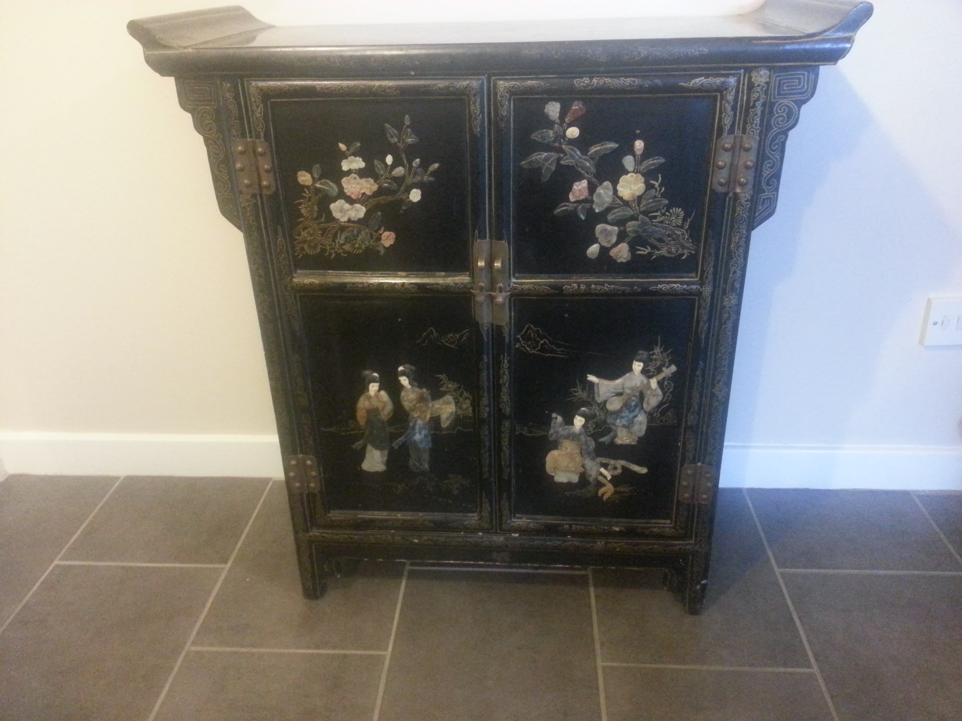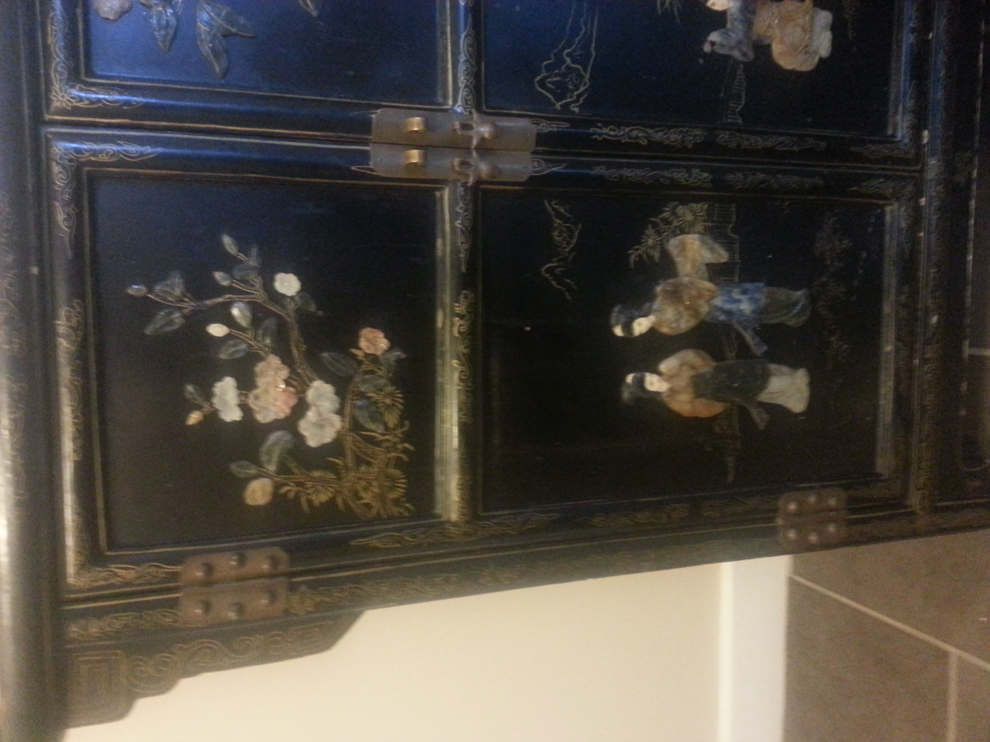 oriential sideboard cupboard black lacquer mother of pearl