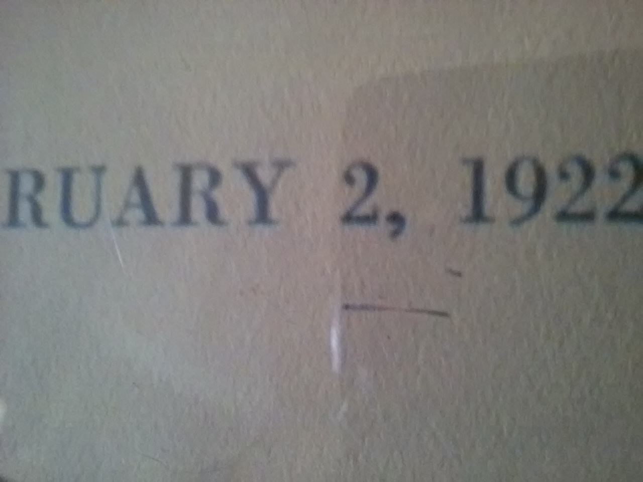 There is one on another site, that is like mine, but with some tears, and blemishes. Mine, except for the paper's discoloration due to age (1922)...it's intact and it has not been cut to fit a smaller frame like the one below. I don't know what I'm going to do yet, it's a rare find, and I believe someone that