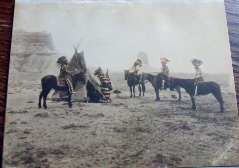 I have an original photograph taken by Charles Carpenter between 1913 and 1916. Looks like it is on a reservation as the Chief is standing giving orders to his braves who are on horseback. The Chief's wife is sitting on the ground in front of the TeePee and there are also several dogs laying around. Looks like it was taken in Maybe Nevada or Colorado.