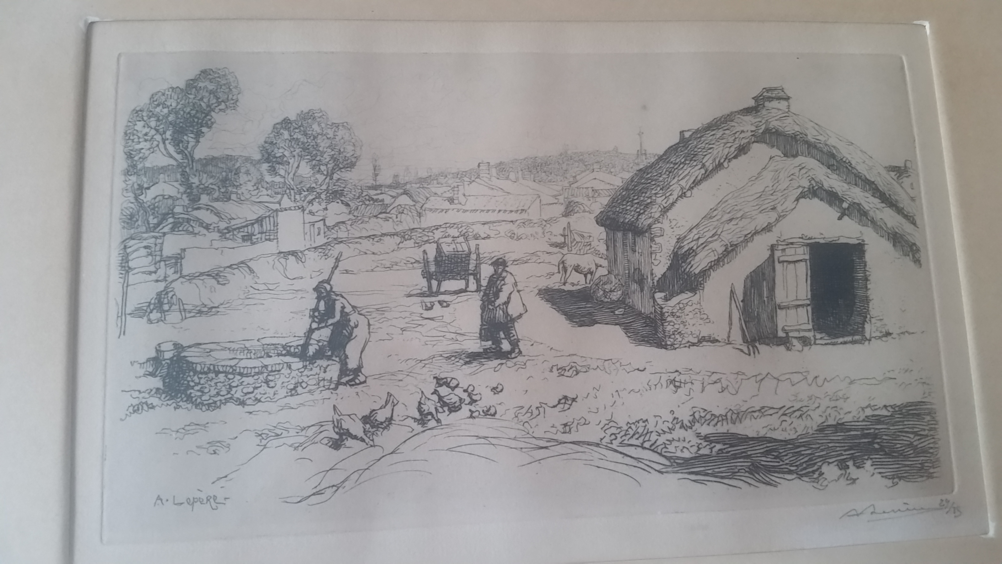 The picture is about 12x9. On the bottom of left hand corner is a printed signature, on the bottom of the right corner is 29/35, and under that is a cursive signature. On the top of the back is a foil round seal, in the very center it says Fine Arts, across the bottom it says Milwaukee, across the top I can only see some of letters, I think it is The GR Ba????. The back of the picture looks like white wood with the grain running horizonal from top to bottom.