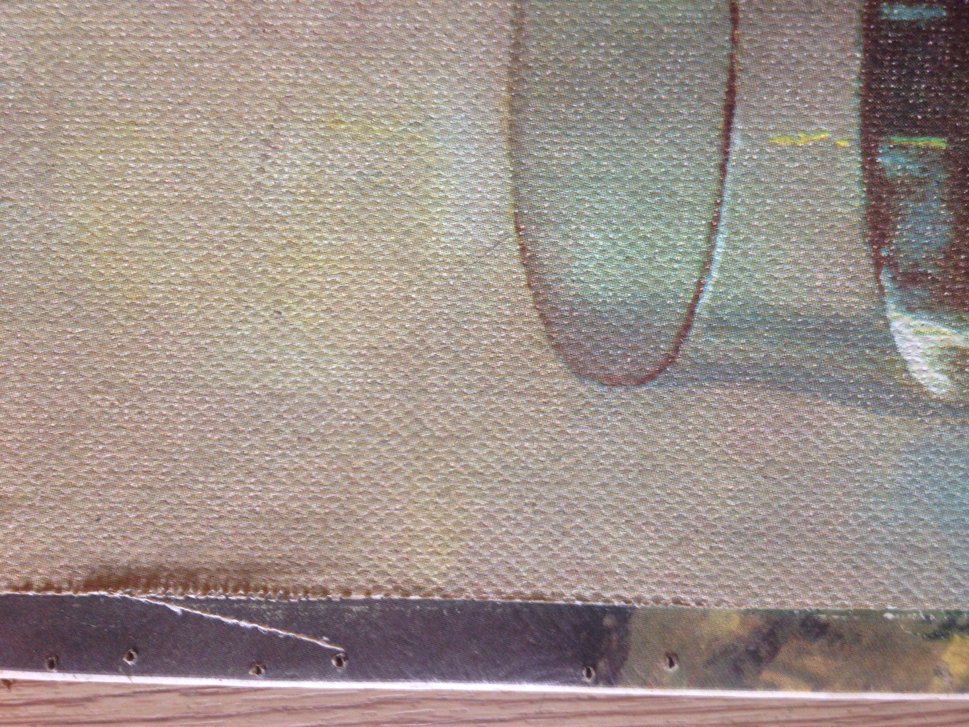 I bought this painting framed from a sale, and the frame was so dirty that I could barely make out what the painting was of, I removed it from the frame and as you can see it is a canvas oil painting, still in good condition, and pasted to a board. It is approx 15x19, and upon magnification, brush hairs and excess paint in areas are visible, very curious what this may be worth.  I'm a young collector/dealer with limited experience and would appreciate any information on this piece.  Thank you