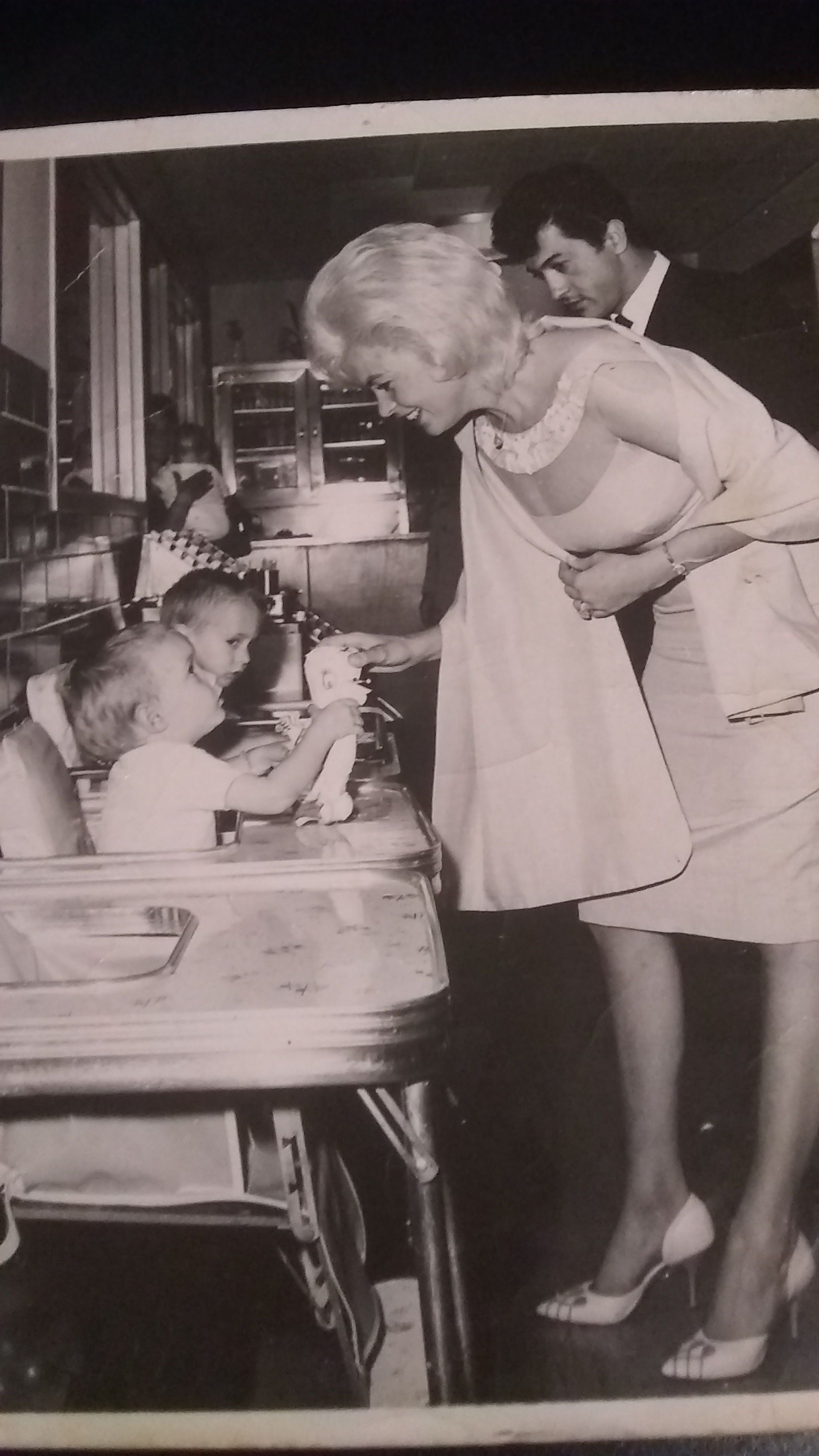 Description I have two original black and white vintage photos of Jane Mansfield, Rock Hudson an air Force Private and two other men at the children's hospital in Germany. The second photo is of Mansfield , Rock Hudson and two toddlers setting in high chairs. I'm assuming the air Force Base. Not really sure about location. I inherited the photos from my stepdad For he was the leadion for the air Force at that time. His job was to follow movie stars and take photos back then.