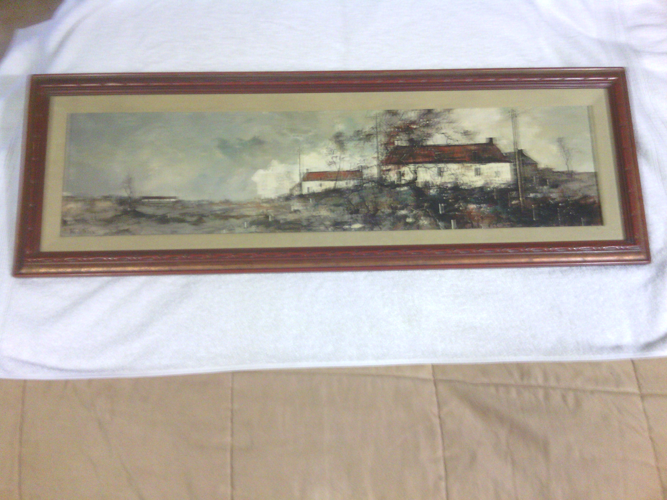 The painting has a sticker on the back of the frame that estates.