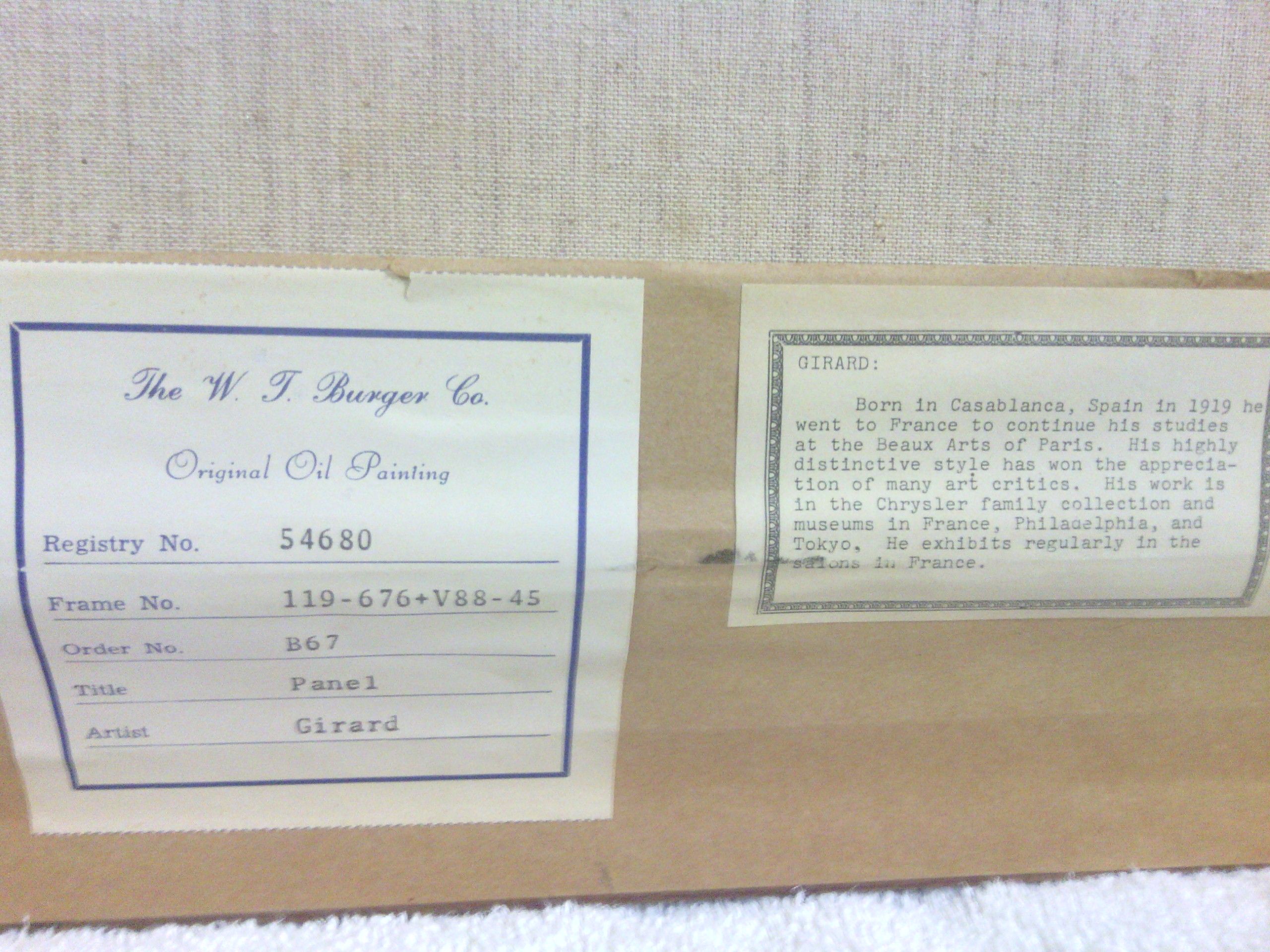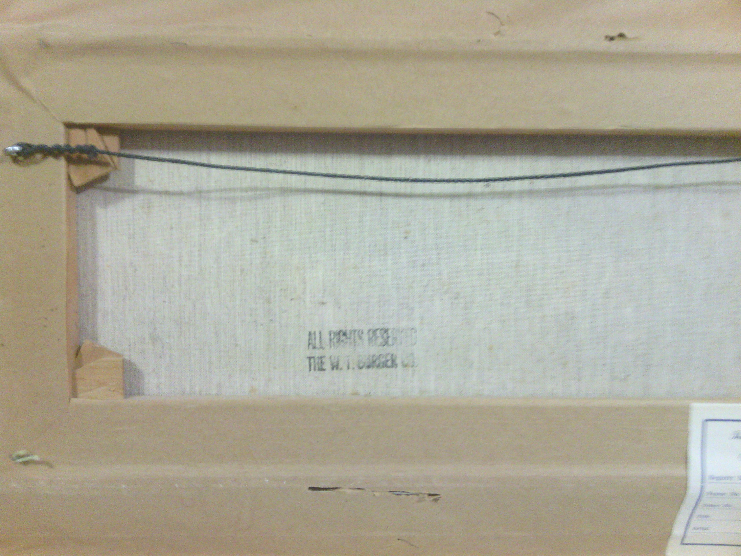 And on back of canvas is stamp, ALL RIGHTS RESERVED THE W.T. BURGER CO.