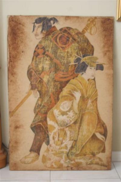 During the same time period, Vargas was featuered at NYC's Art Expo, showing a $250,000 USD batiked piano. He was best known for the wood furniture pieces that he batiked to look like marble with images of flowers or birds on them. His most collectible furniture items were the intricate entry pieces that had matching mirrors. These sold from $35,000 - $125,000 USD.