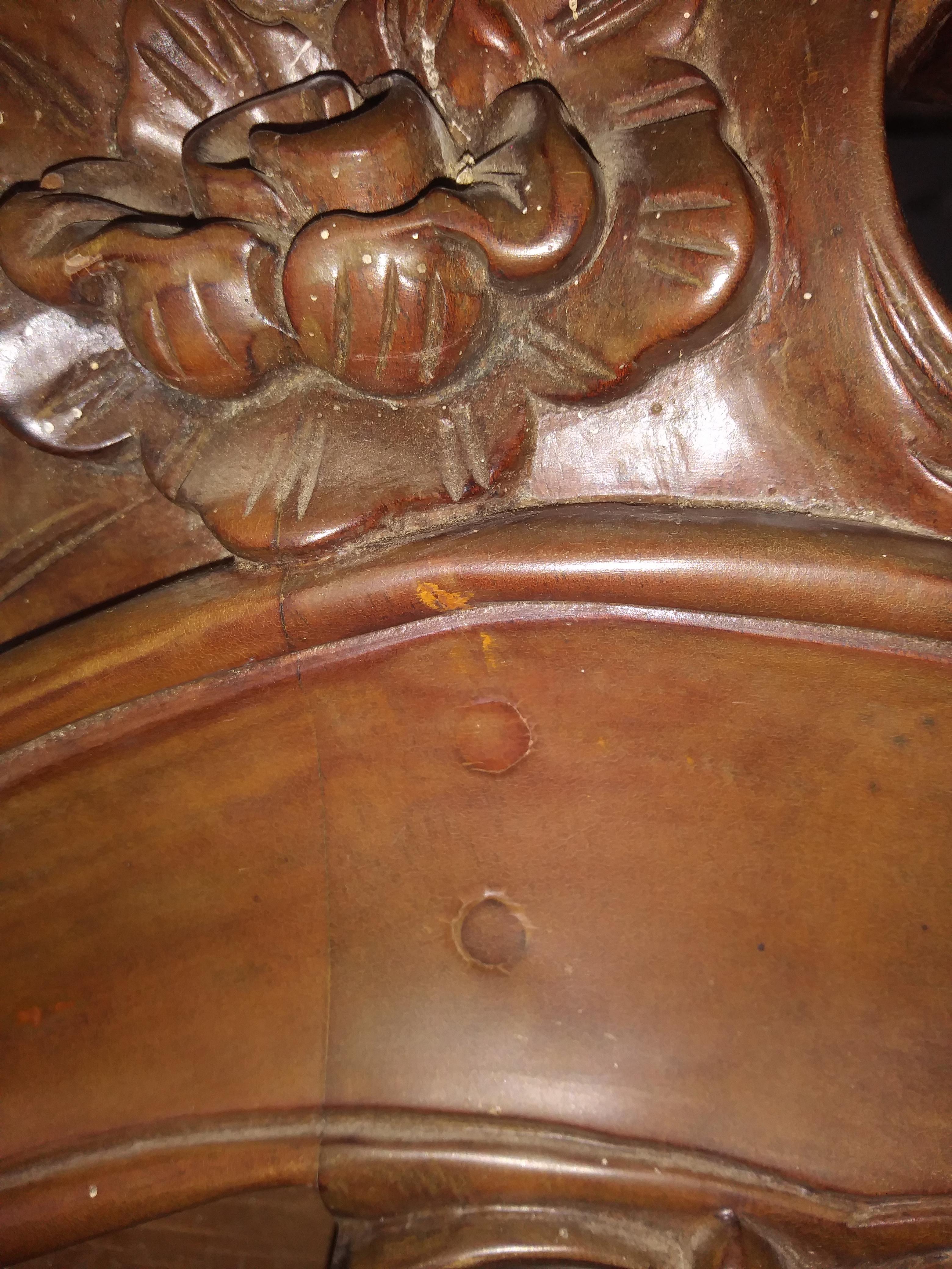 Please help !! I had purchased a beautiful piece from an antique store and do not know very much about it ... I have done research to find out it is a Rococo piece it is mahagony wood it is a king size as they say , but I'm not sure of the time period it rasies a few questions cause when i had took it home to clean i had relized in the back of head board and foot board they dont put furniture together like that with dawls !! Please i am looking to find an answer have asking an antique dealer which had told me to look into it .. It seems like you have a piece of an original Rococo dating back to the 1800's ...