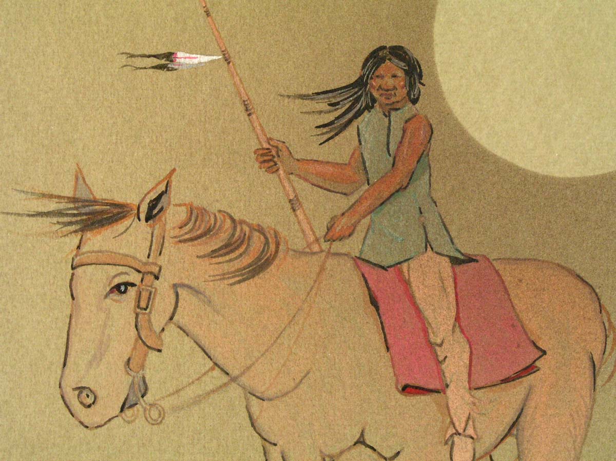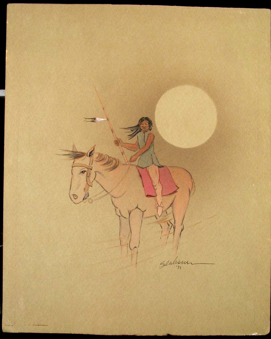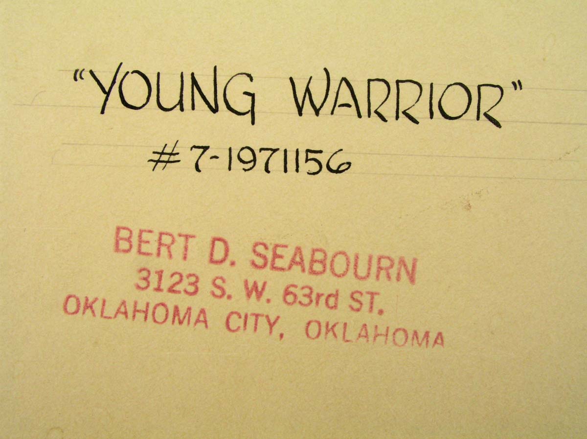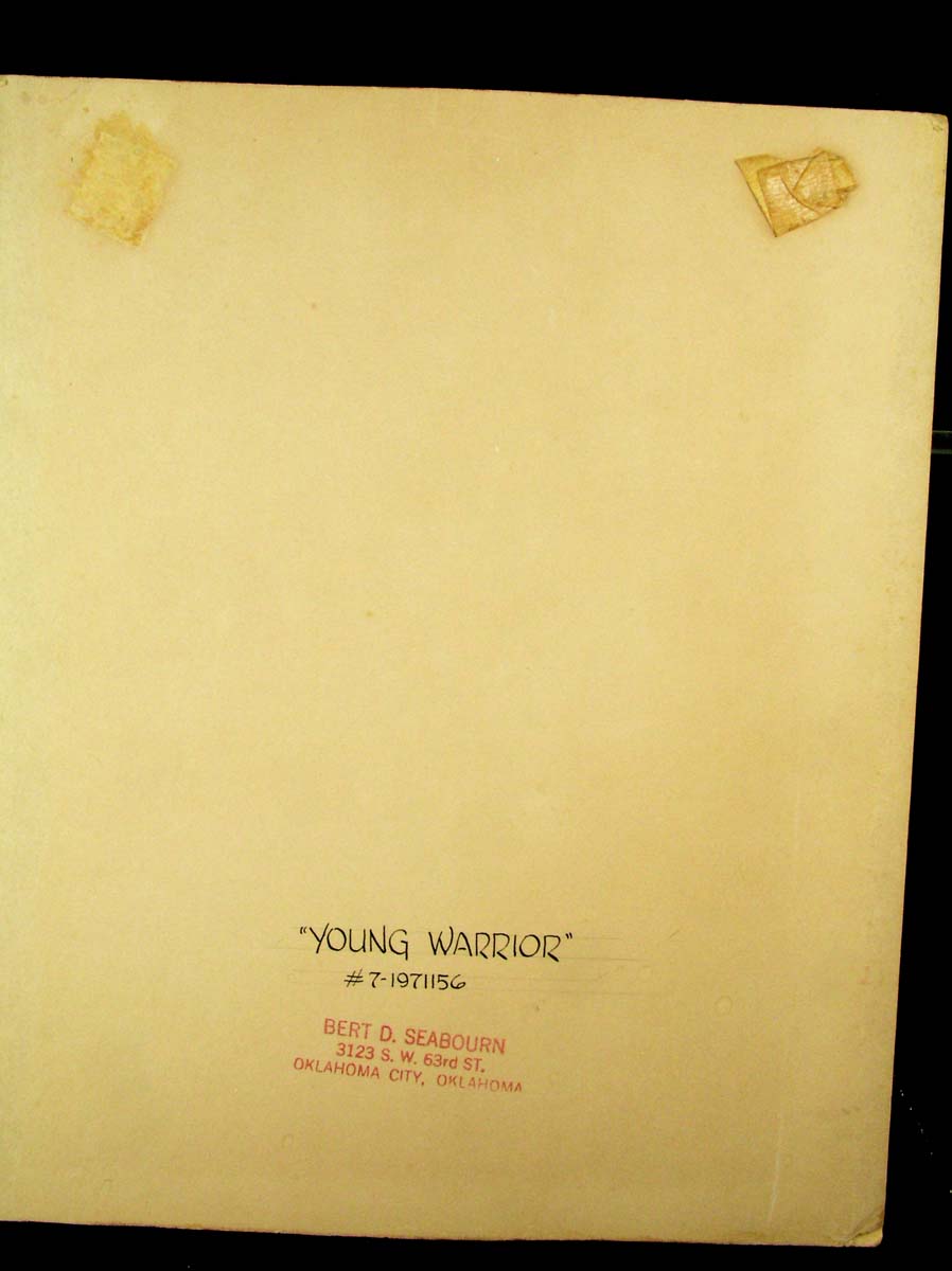 It's signed by the artist and on the back has a title and number: "YOUNG WARRIOR", #7-1971156, followed by a stamp with the artist's name and OK address.
