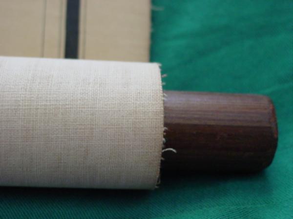 some kind of cloth or fiber like material not as durable as canvass but better than paper. Wood top and bottom