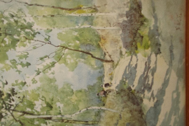 I have bought a water colour. The signature is indistinguishable to my eyes however i have attached photos pf both the entire picture and a close up of the signature. Apart from this i can not tell you alot. Sorry for the poor information. All i can say is i like this picture.