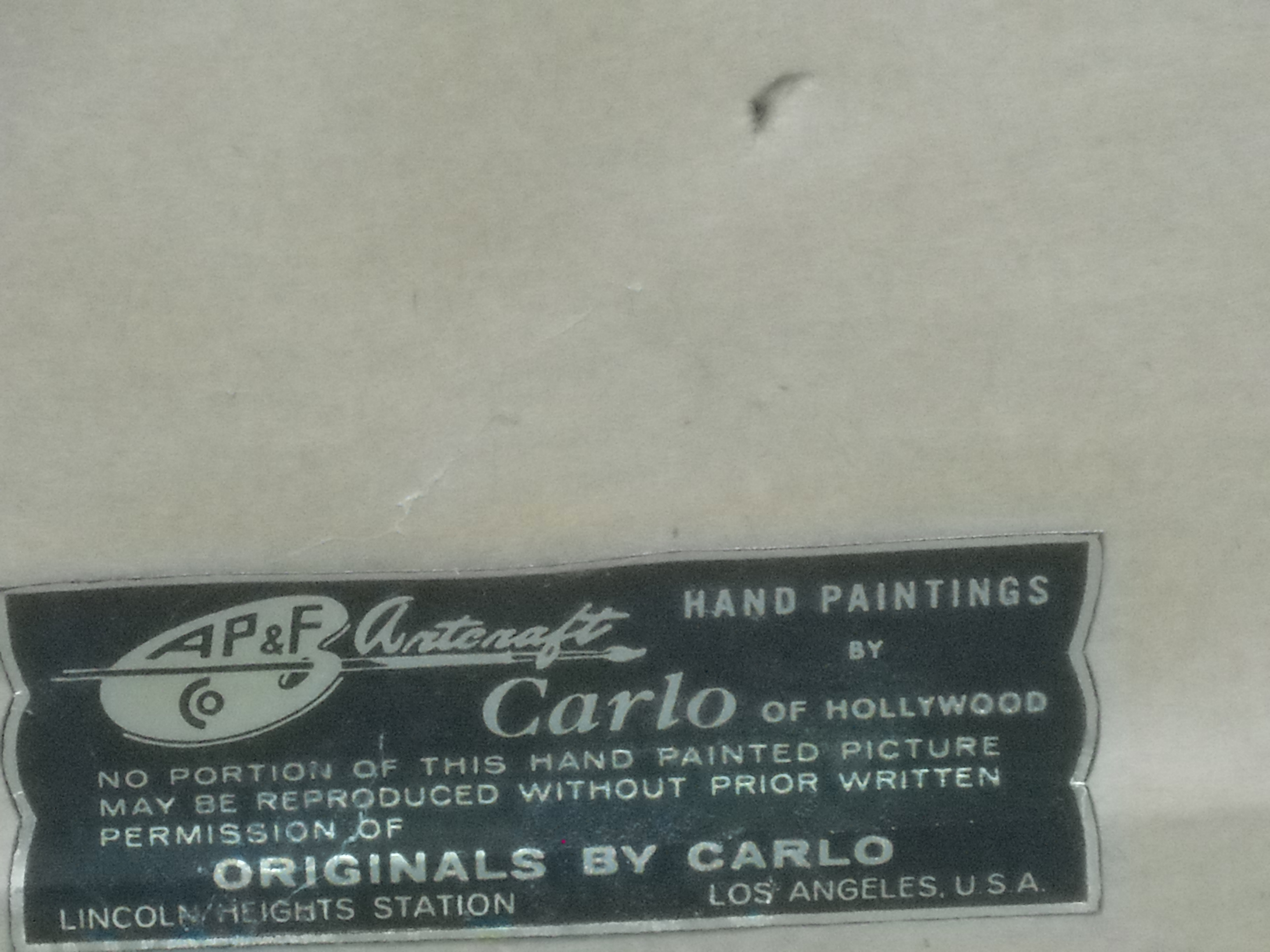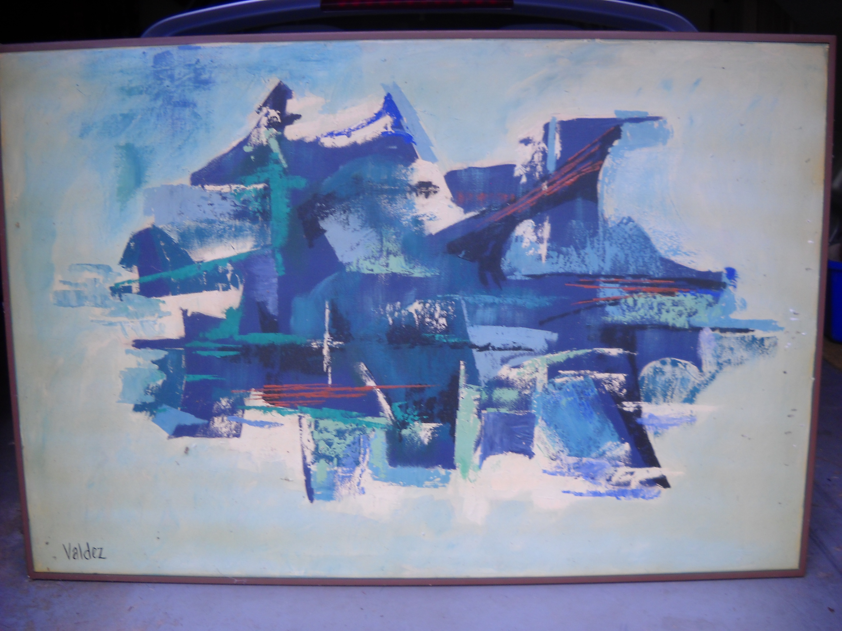 This painting was a gift from my sister and was bought by her in Chicago in the mid 1960's. It measures 60" x 40" and is in the original frame, has a tag on the back from Carlo of Hollywood, has a hand added number on the back, A43 1964 B, and is signed ont the front Valdez. It is badly nicotine stained. I'm trying to determine if it is worth getting cleaned.