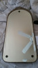 I have a mirror that is approximately 3 feet tall (without top decoration) and a little over 2 feet wide. It is gold in color with a rope/ribbon design all round, as well as a beautiful decoration at the top. The top decoration has flowers, with two things that are crossed. One looks like a torch and one could be wheat coming out the top. It has a paper covered back with no distinguishing marks.