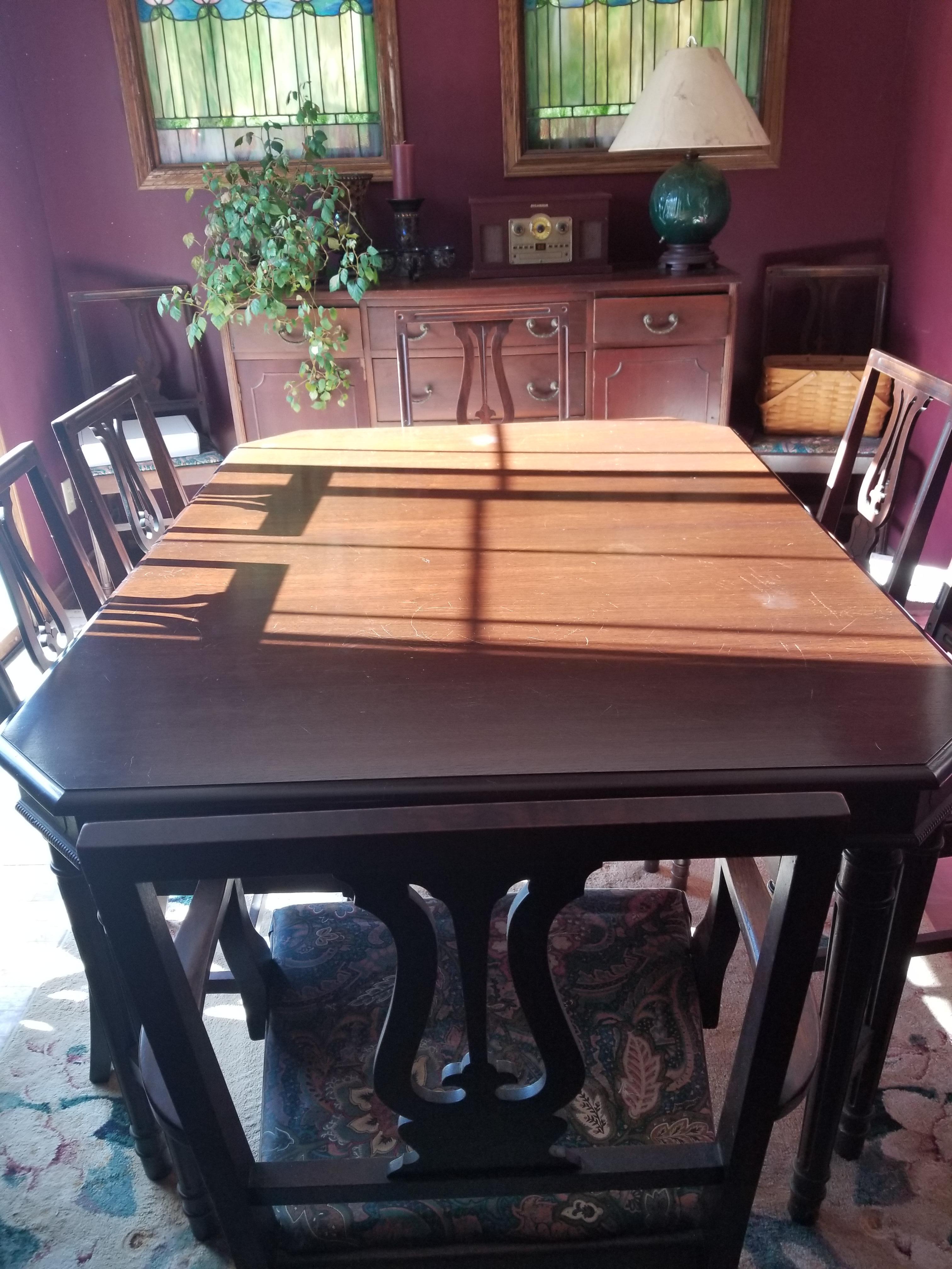 Table is 45" W., 59" L., 29-1/2" H. (1 leaf)