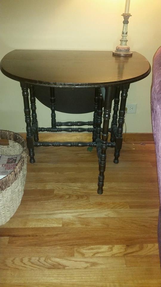 I am posting this for a family member so I dont know anything about this table besides the legs fold in to allow the sides to drop on both side. Also a little drawer in the front.