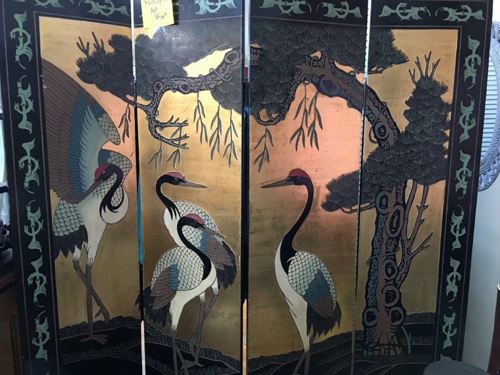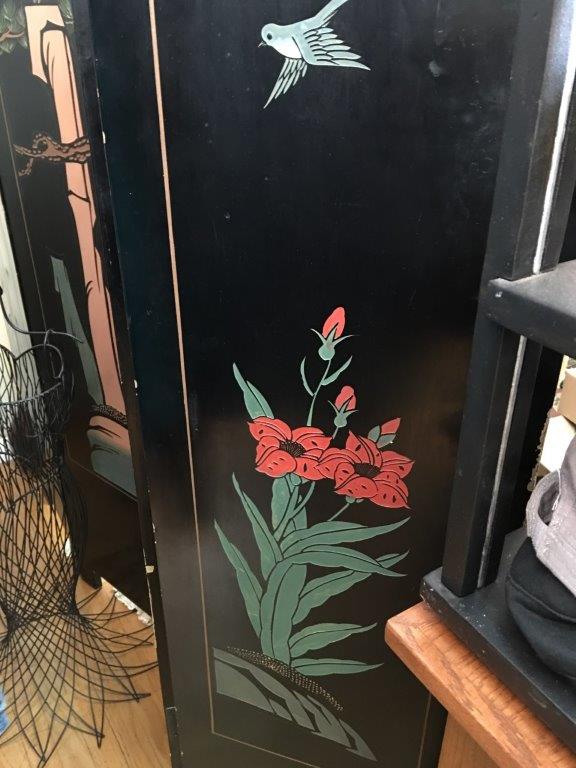 I was told this 4 panel divider is an early 19th century coromandel screen divider with gold leaf. could be valued at $5-$6K even with the rough edges. He said it is typical for it is mobile.