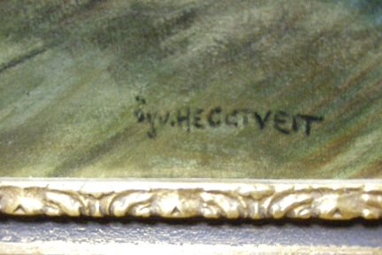 This painting by Oyvind Heggtveit is 38 inches wide and 27 inches high and came to America from Norway with my maternal grandmother in 1920. There is no title written on it. I recall seeing it hanging in her various Chicago apartments all during my childhood in the 1950's and 60's but don't know the circumstances under which she acquired it. I do remember her commenting that she had met the subject of the picture during her voyage on the Stavengerfjord. I plan to keep it but would be interested in whether it has any monetary value.