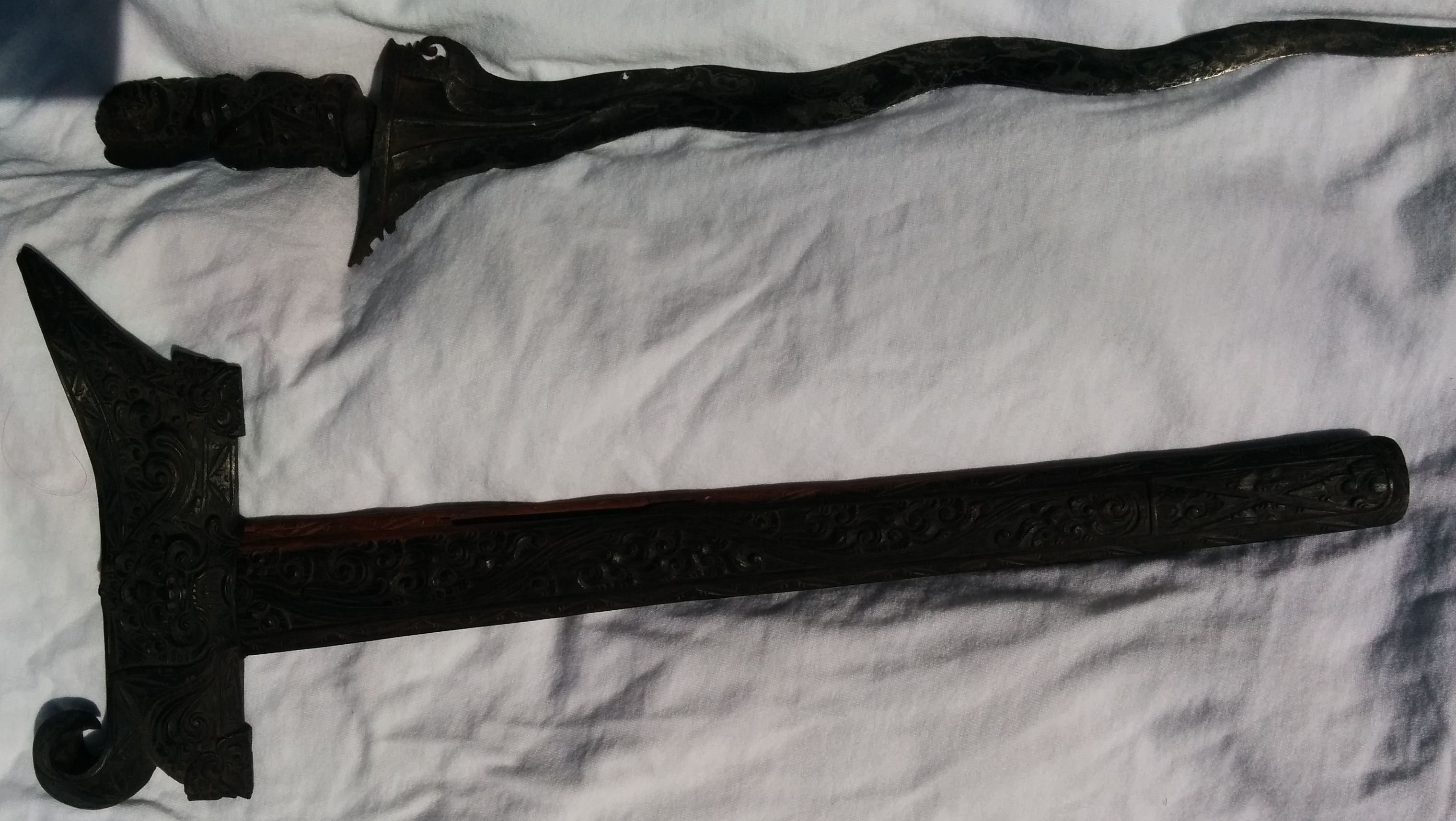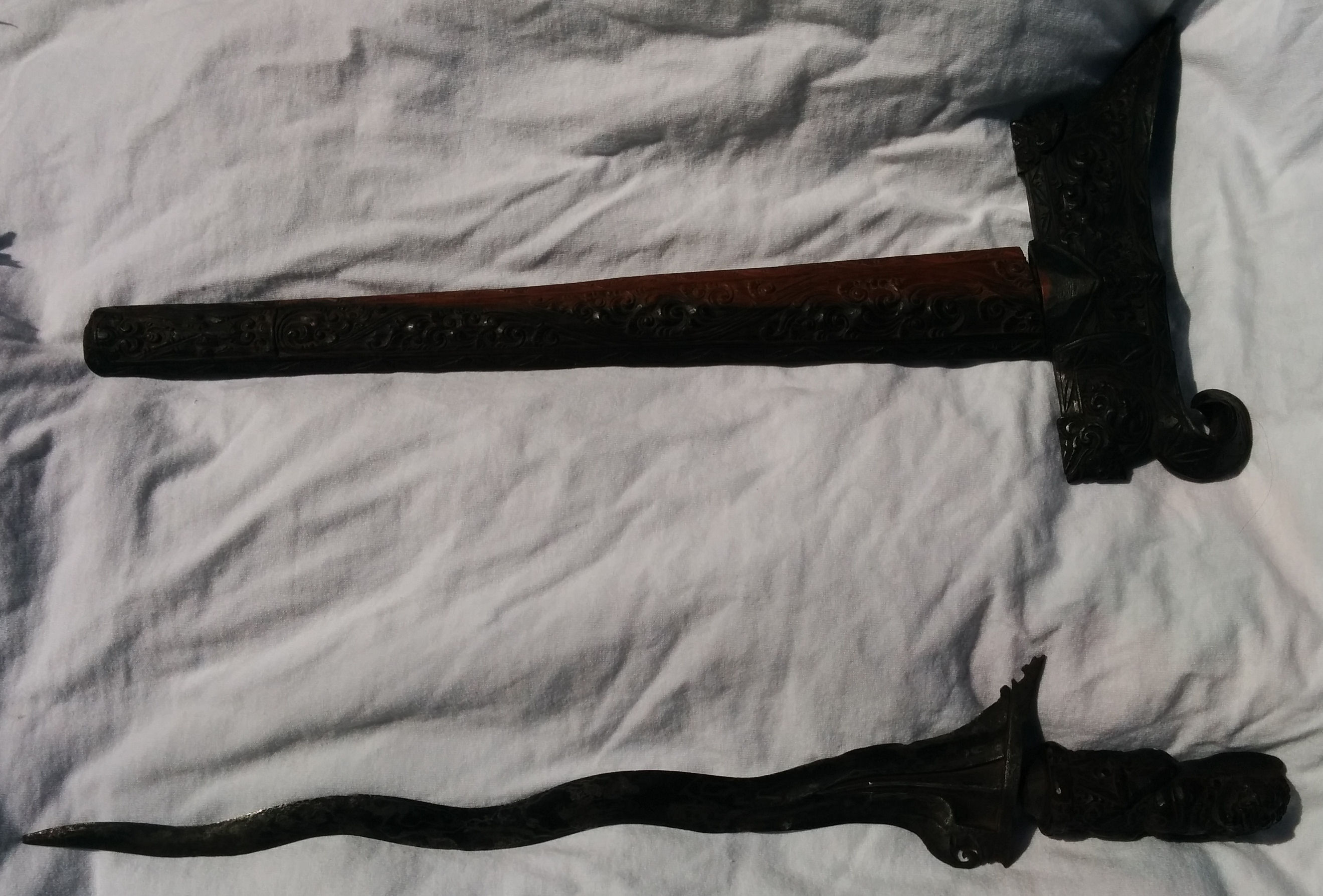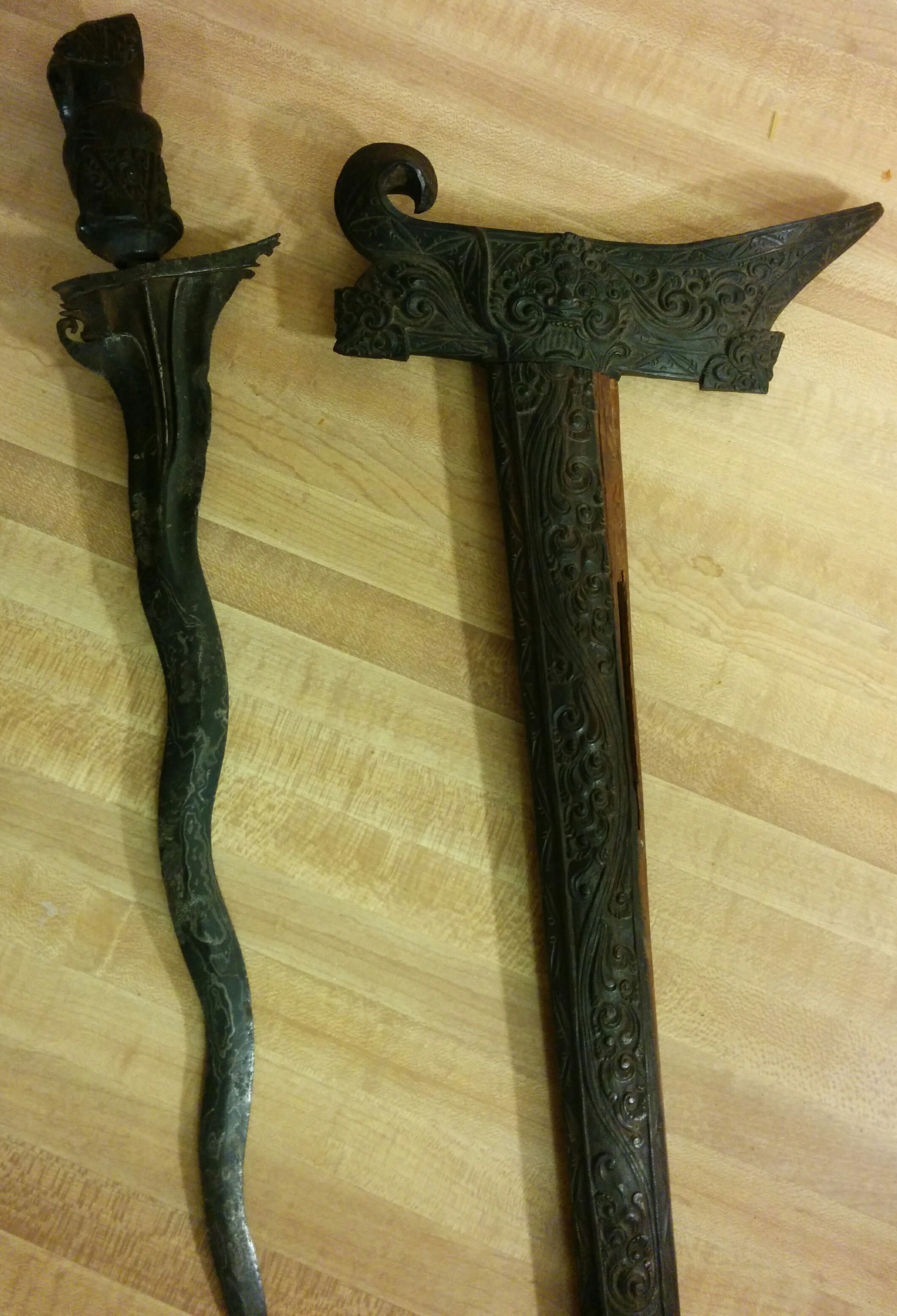 I acquired this Kris from my grandmother on her death as it had been my grandfathers until his death. He served in the Navy during WWII and served in Japan post surrender as some sort of troubleshooter for the Navy. During one of his frequent trips he acquired this Kris and used it as a paperweight in his Navy office. Fast forward forty years he passes on and my grandmother keeps it on her coffee table until her death a year ago. I've had it in a closet and I've been wondering exactly what it is and what sort of history it has besides what little I know.