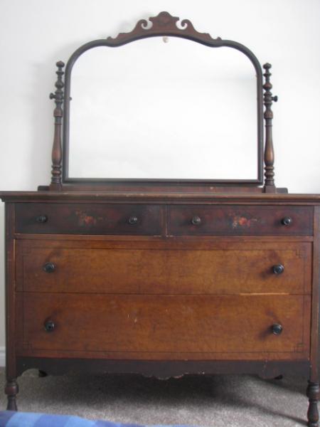 Its extremely heavy. It has a stamp on the inside of the top drawer( picture shows it) stamped " Paine furniture Co. Boston Mass." The dresser has all dovetail through out the drawers. It has the numbers D.5029 0n the back of the mirror and back of the dresser.