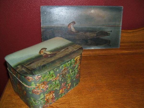 I purchased the 19th century celluloid photo box in 2002 and later found the painting with the same image.