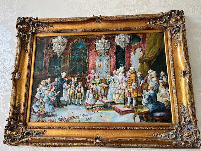 Hand-Painted Rococo-Style Salon Scene, Signature Unknown