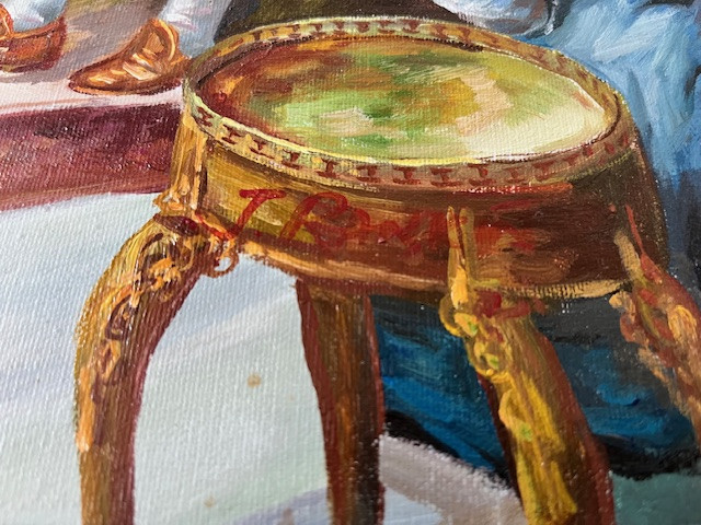 Signature: In red on the leg of a round gilt table, but cannot be deciphered
