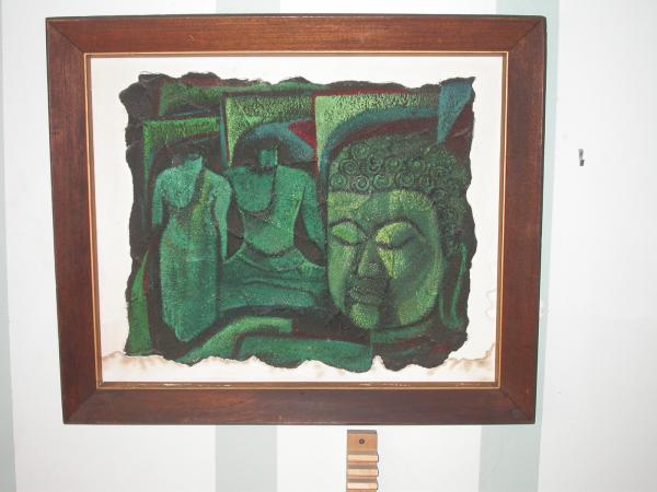 this is a painting I got from my grandfather he died at 83, the painting is an original, artist I cant exactly make out it looks like 5ukgyc or 5ukyyc maybe one of those, well the painting is painted on a product on top of the canvas, it's like cement or what ever painters use