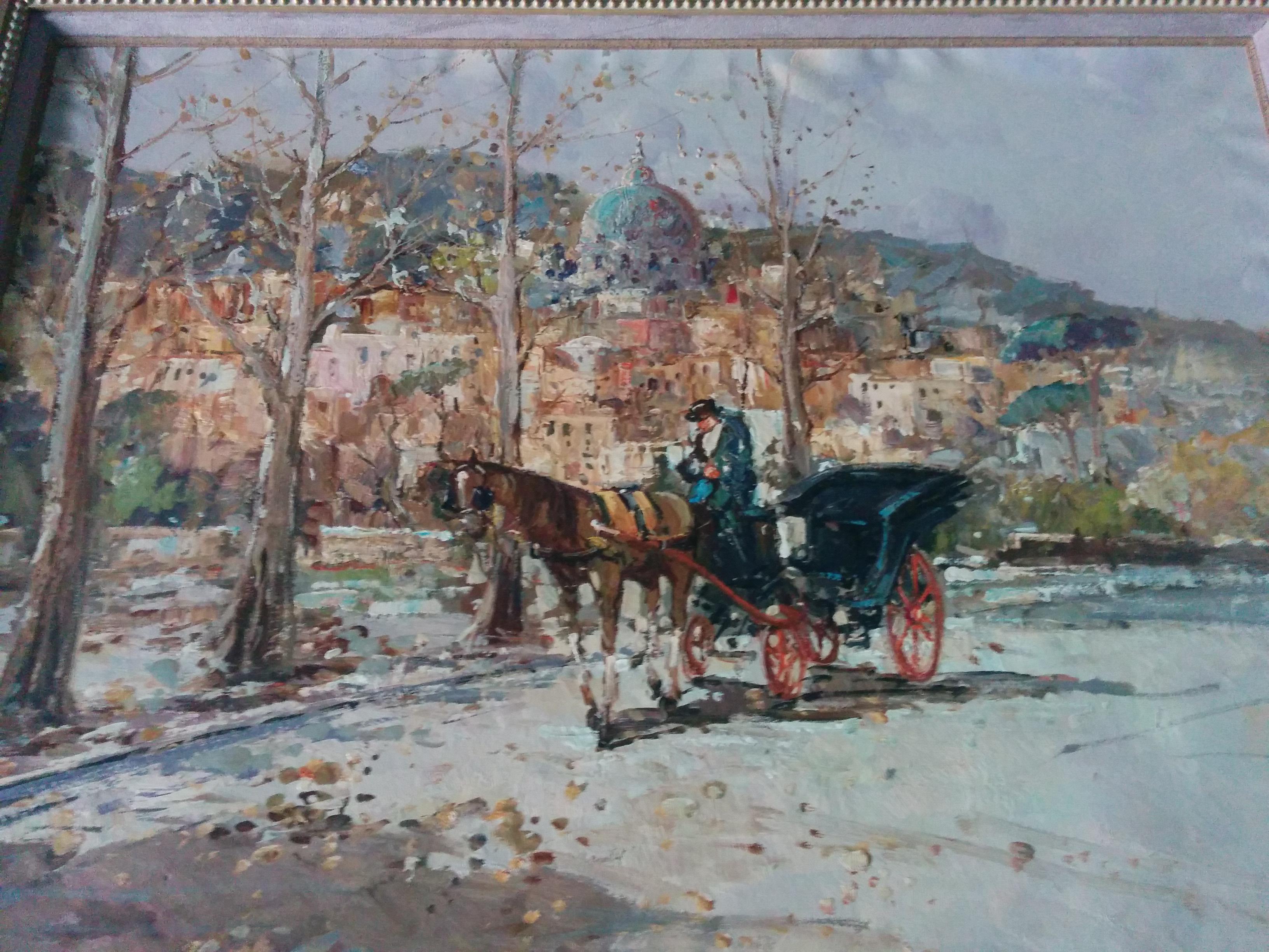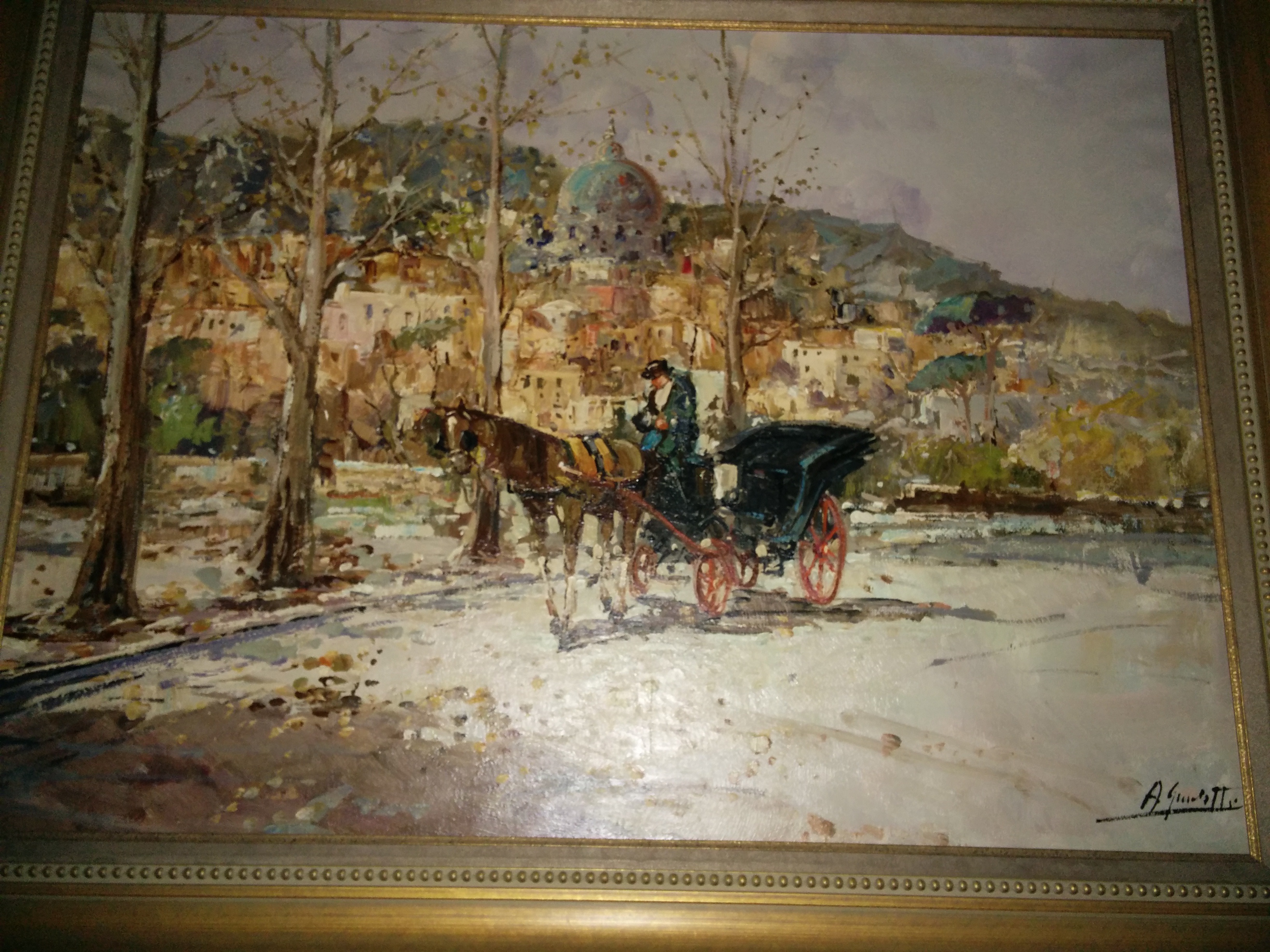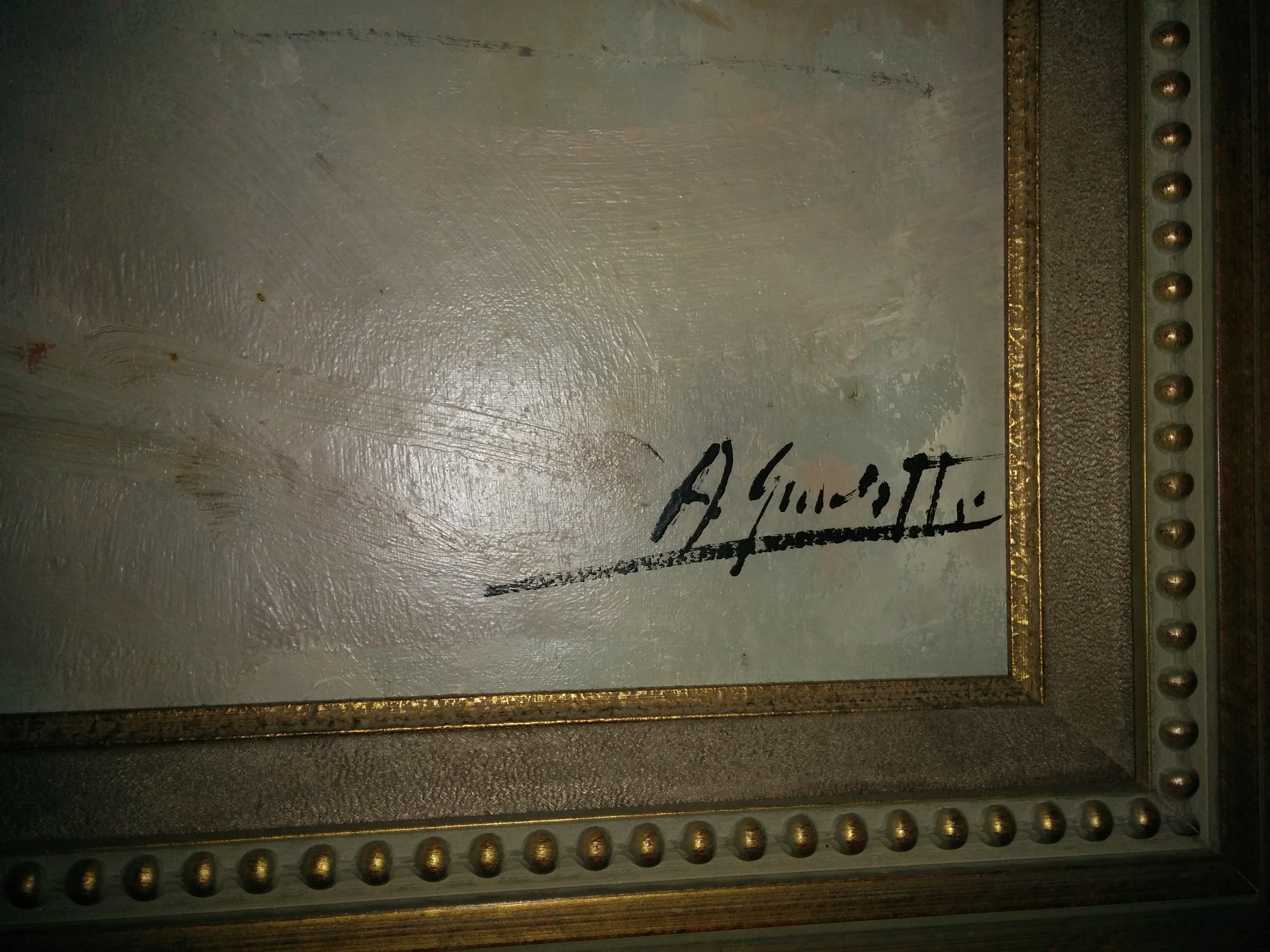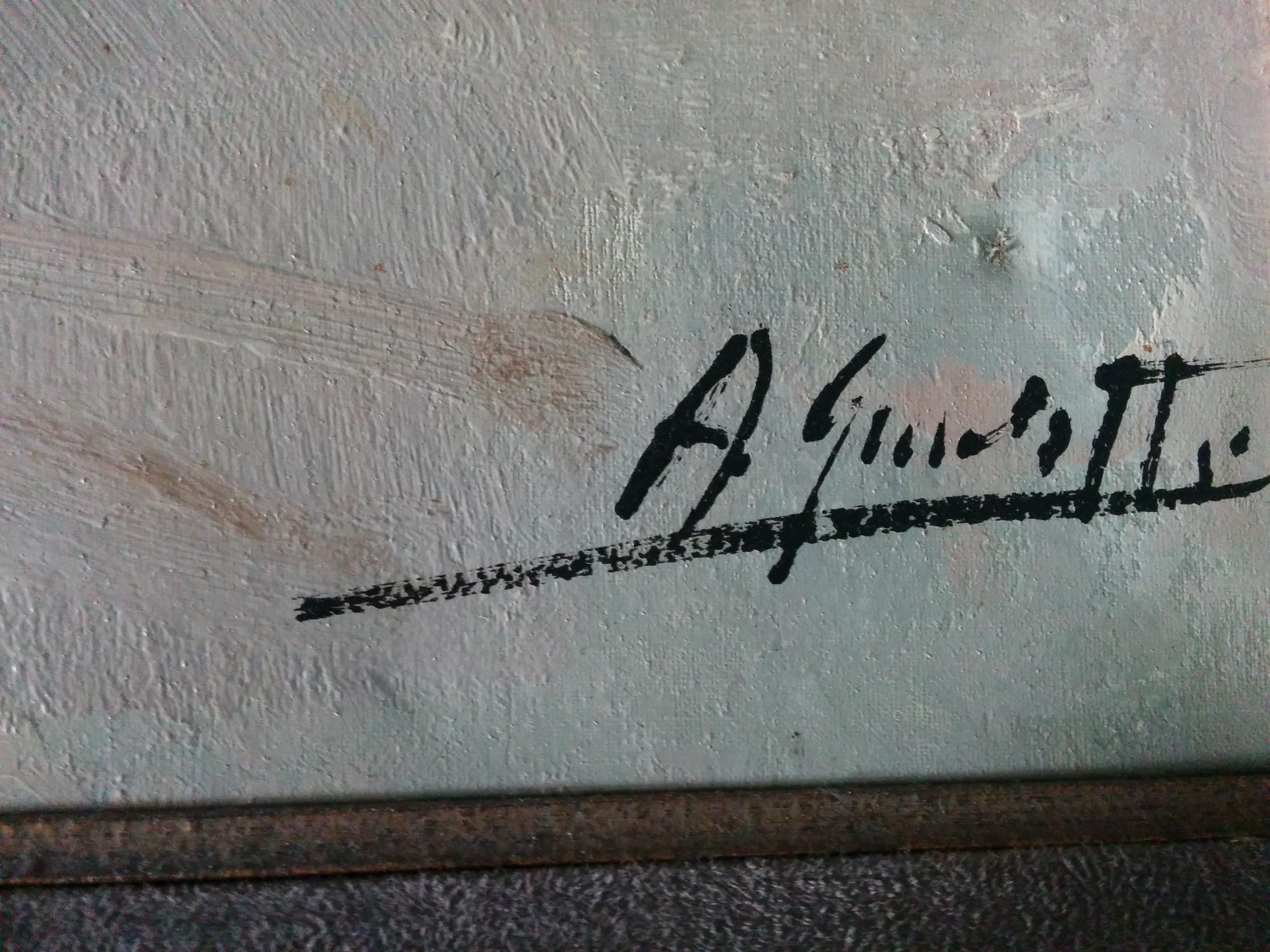 I believe it's by Antonio Guidotti (1881 - 1958), an Italian artist. I think he worked with both oils and watercolor, but his few auction records are all watercolors and smaller than your painting. Those typically have sold for a few hundred dollars. Oil paintings will usually be worth more than watercolors.