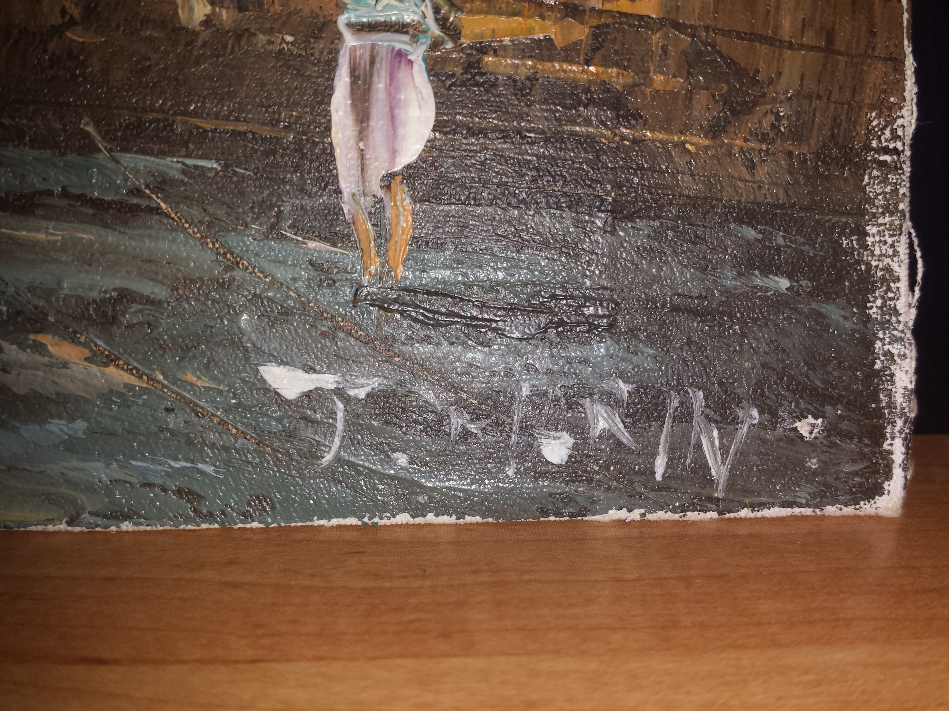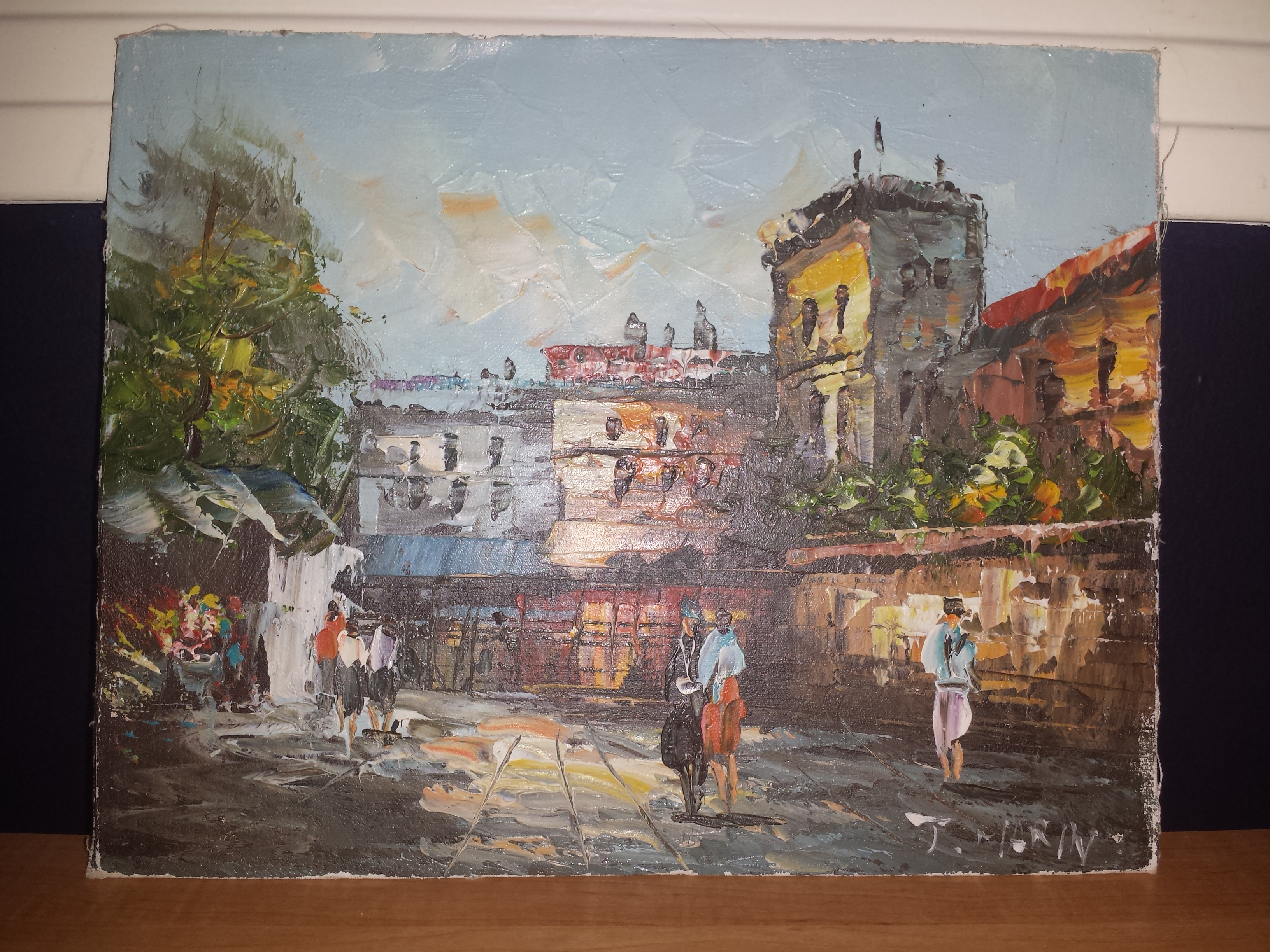 I purchased this original 8x10 painting today at a local thrift store. It was in a hideous homemade wooden frame and I took it out. I'm not sure exactly what the signature states but it looks like "J. Marin." There is a famous John Marin but I cannot find any of his work in this style and this could have been done by someone locally. I would just like to know if anyone knows who may have painted it. Thank you for your time.