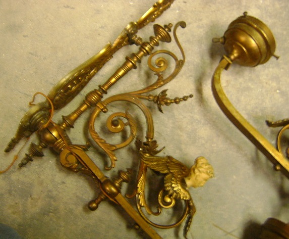 pair of antique electric single arm wall sconces lady head with wings marked Rd 4738