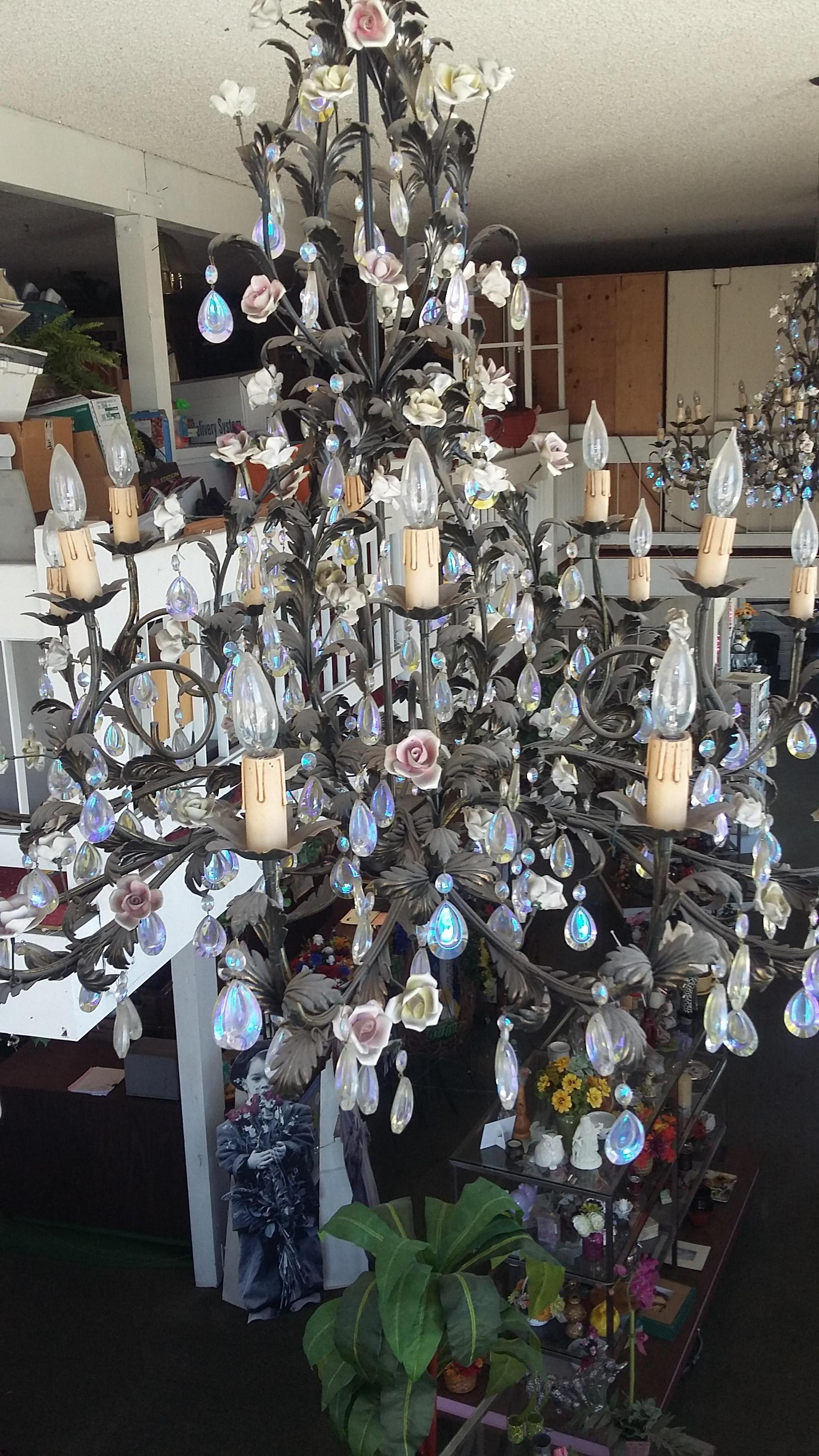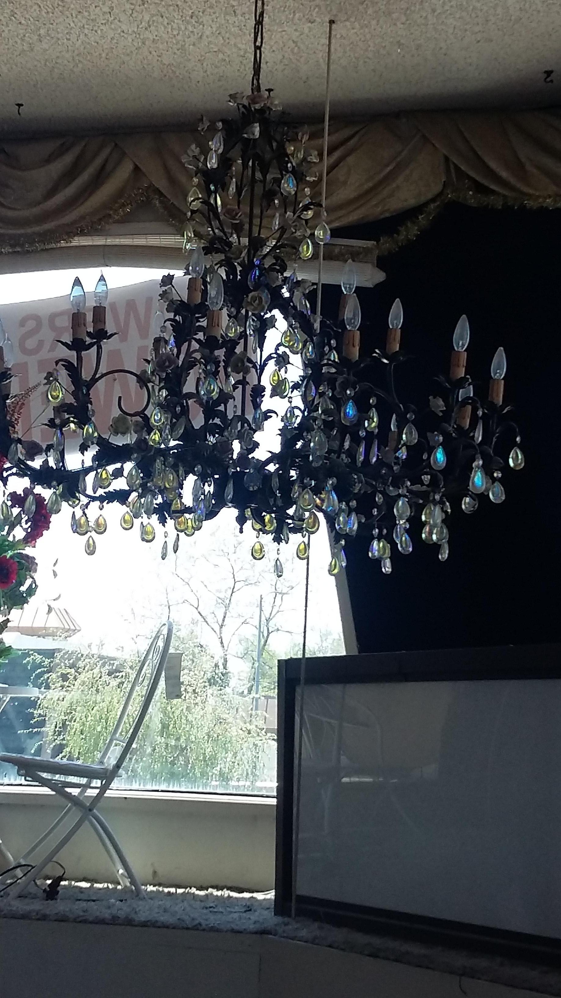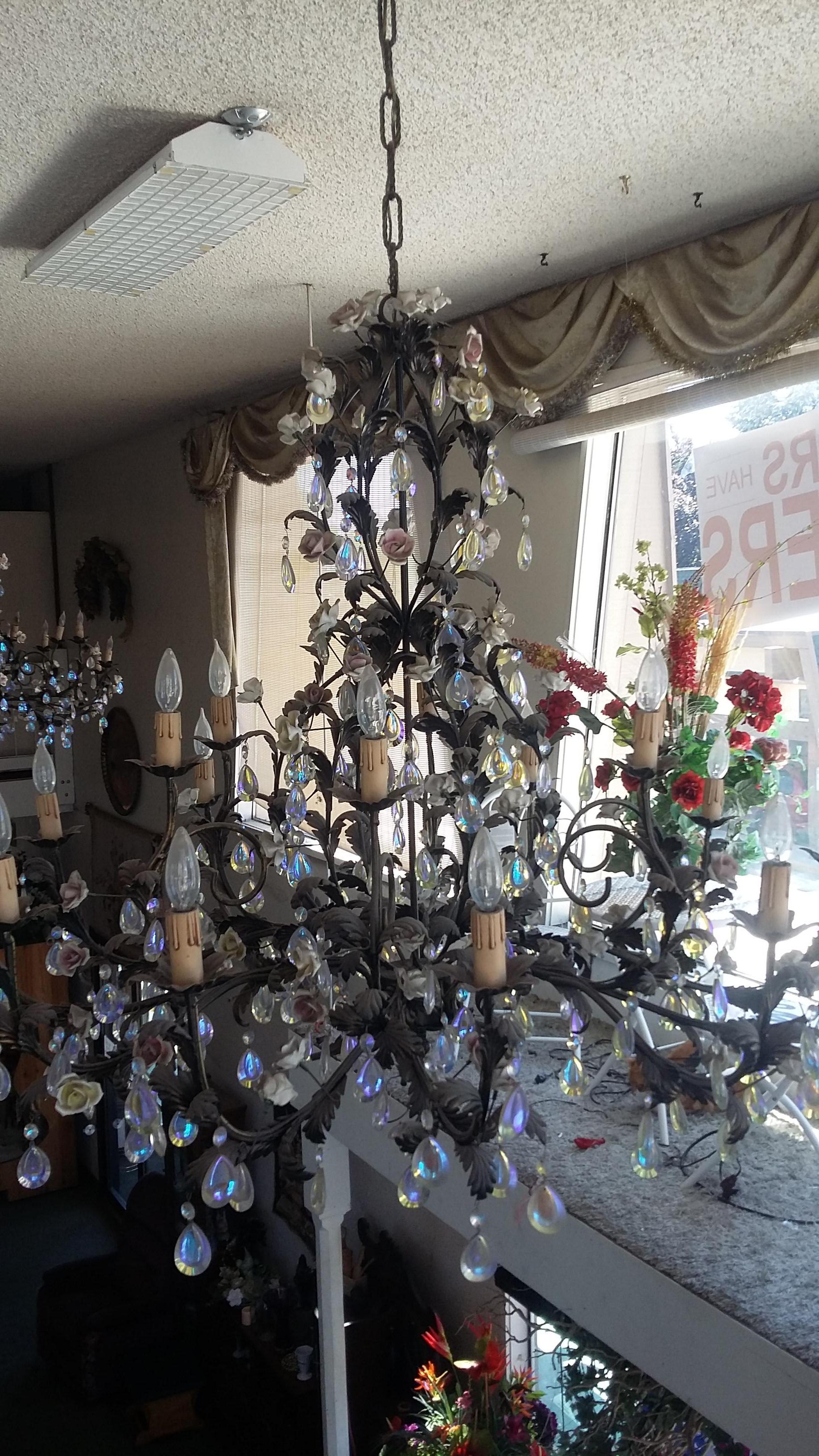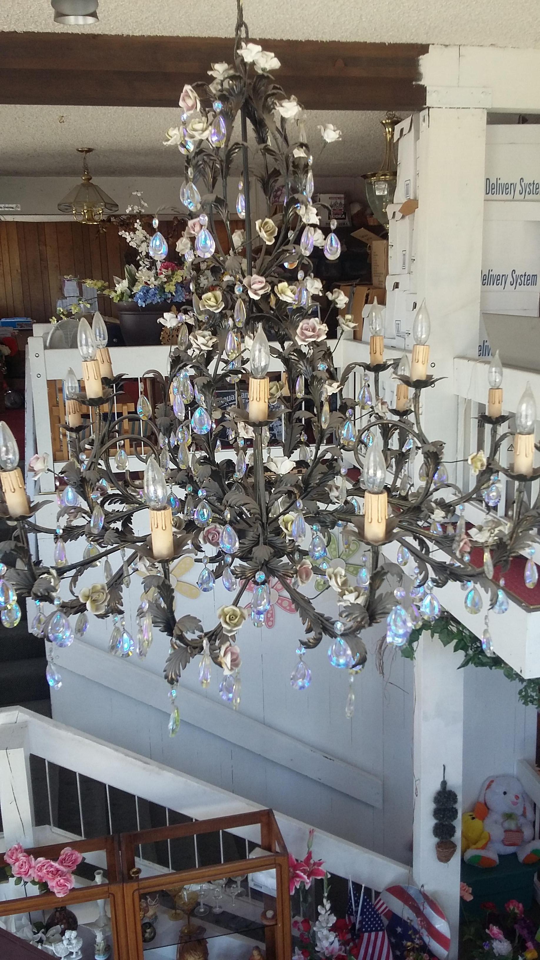 Two beautiful Auroa Bore Alis droplet porcelain roses Chandler with 8 middle row arms and 18 arms in the first row. 18 candle stick lights throughout. Pink and white roses throughout entire pieces along with the generous amount of light reflecting chrystals hanging from each arm. I don't know the year or have any knowledge about there value but need some information because looking to sell both before moving.