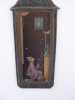 Both pictures appear to be made of either carved bamboo or wood. Frames are made of bamboo and appear to be originals. Not sure what black background is made of. Back of frames are cover with brown paper, and a label on the bottom left side with the following: D. H. HOLMES CO., LTD. CUSTOM FRAMING PHONE 524-6611 EXT. 462. Also on the back of each pic are the numbers 20637 which is underlined and the number 3 beneath the line. They are written in pencil. Tha hanging hardware consist of two eye loops with wire connecting, to hang the pics.