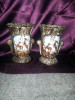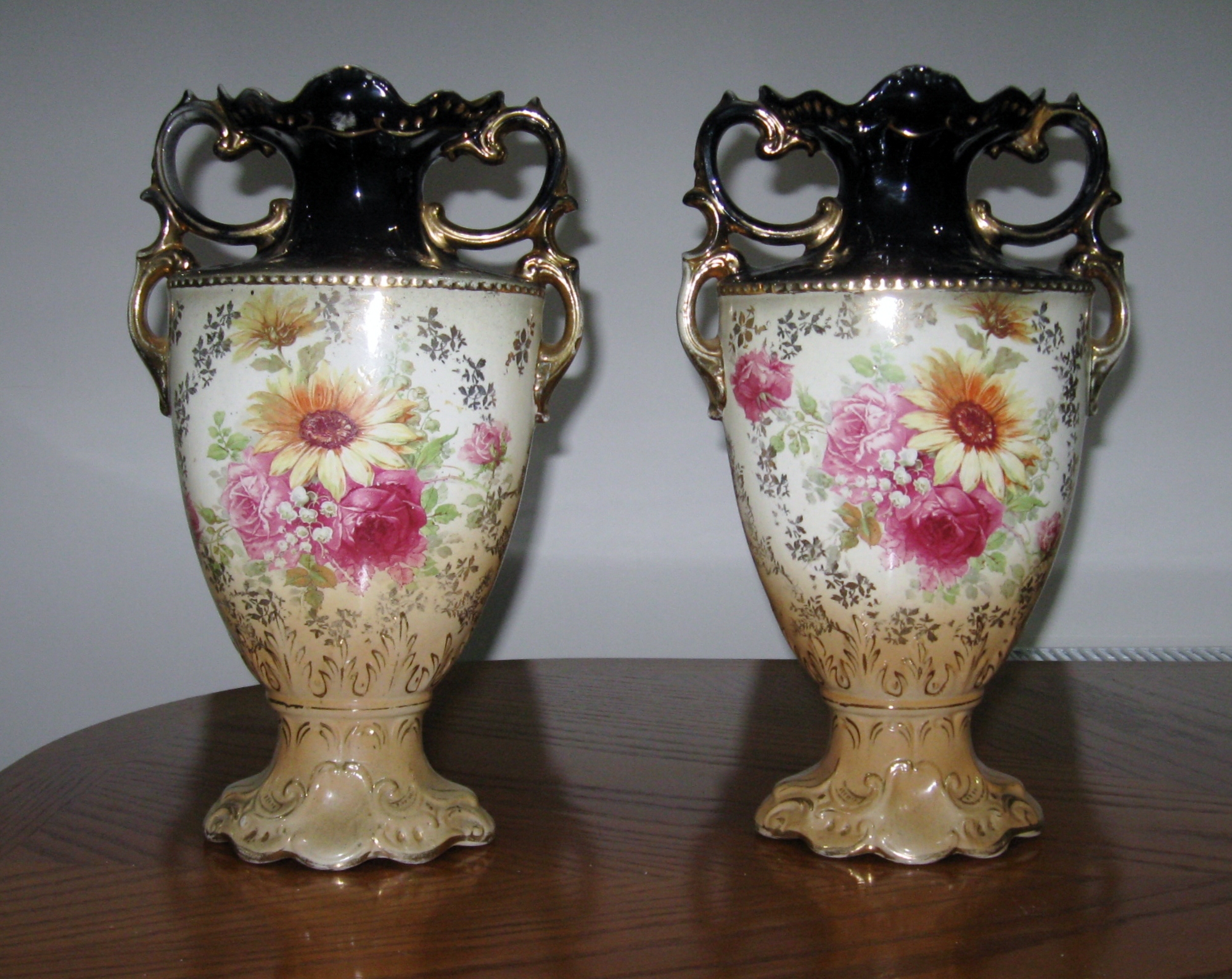 Pair of 14" painted English Mantel Vases. Pictures of roses on front and just one rose on the back.