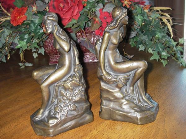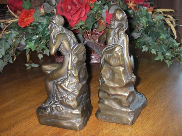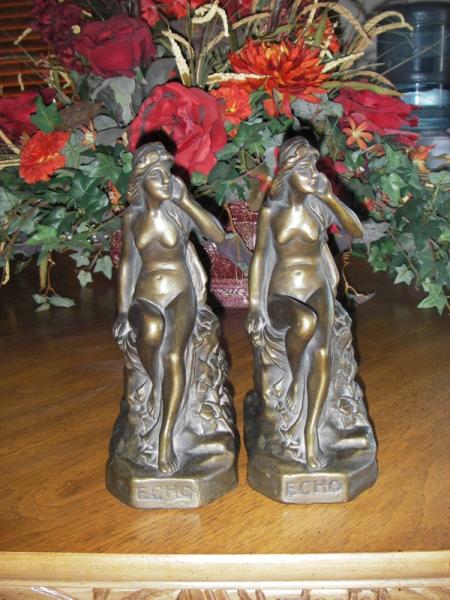 Beautiful pair of Art Noveau statues by J. Ruhl - Echo. About the only issues with the pieces are where the recycling place scraped to check the metal. Also, one statue weighs about 7 ounces more than the other.