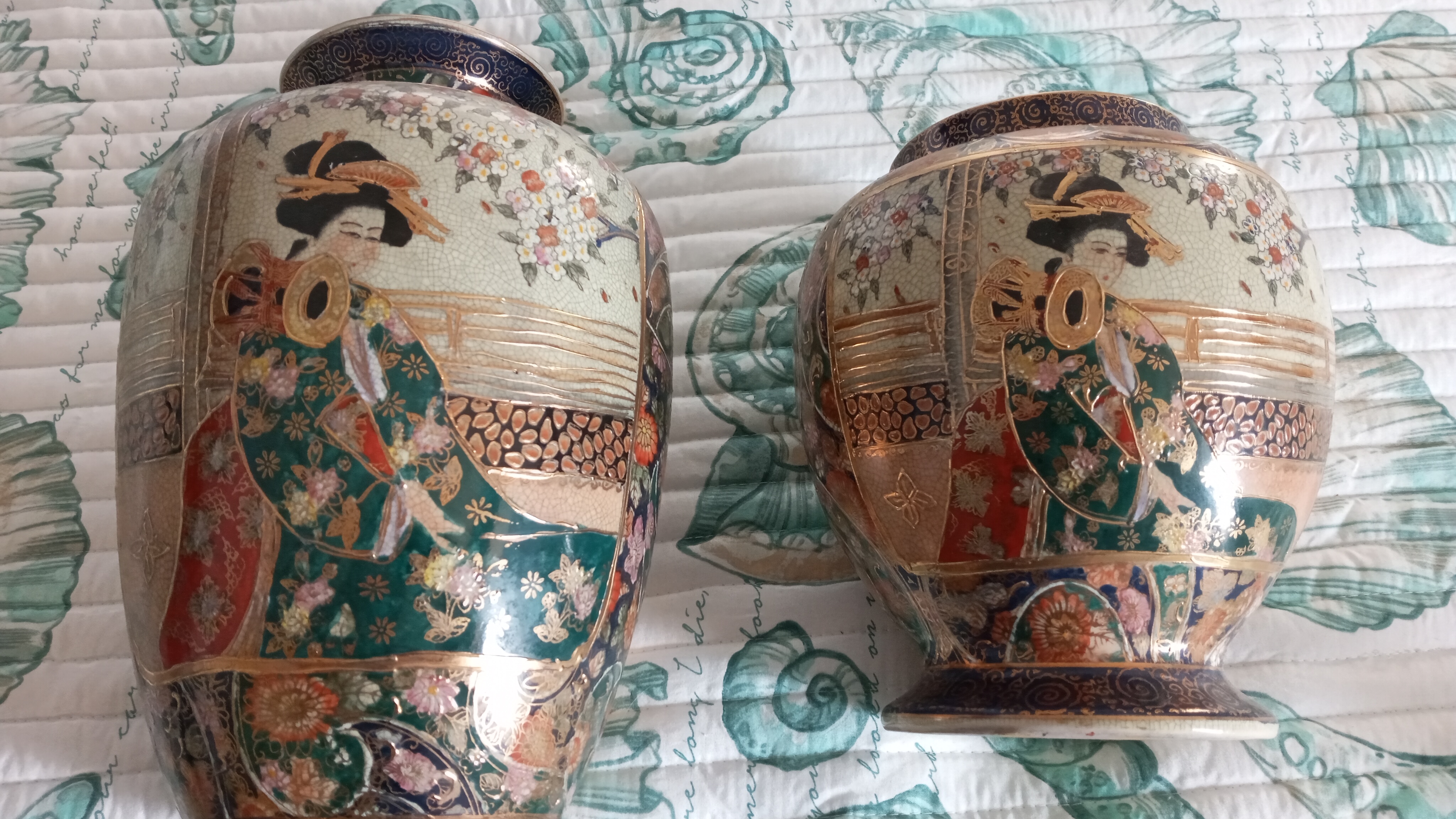 My stepfather's vases. He said the painting is real gold and has the markings underneath I can't identify.