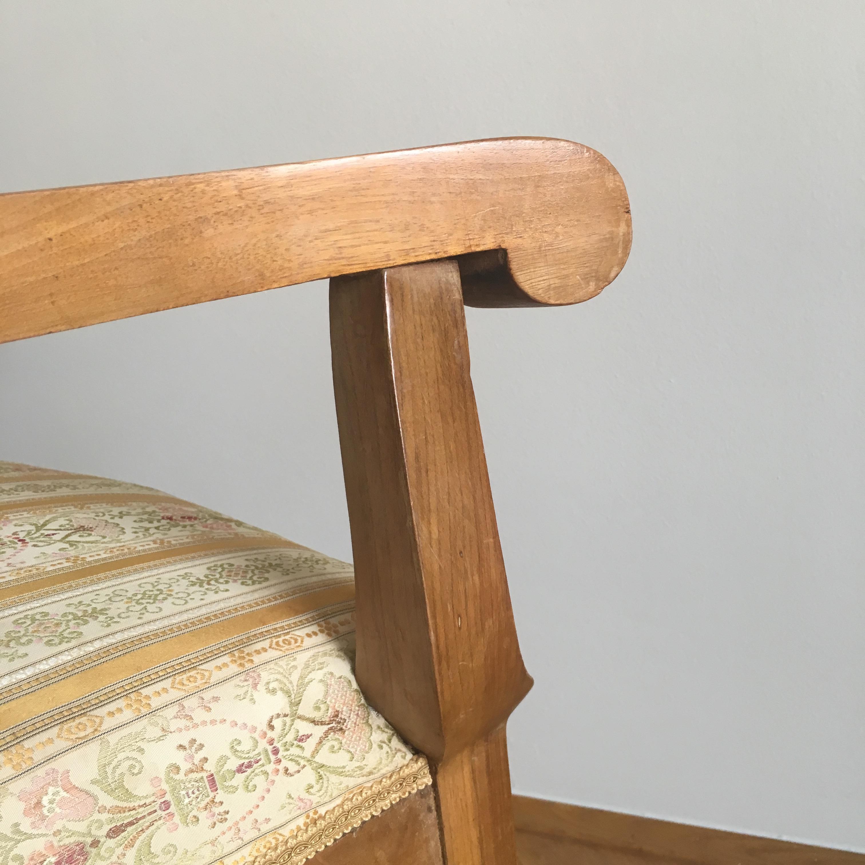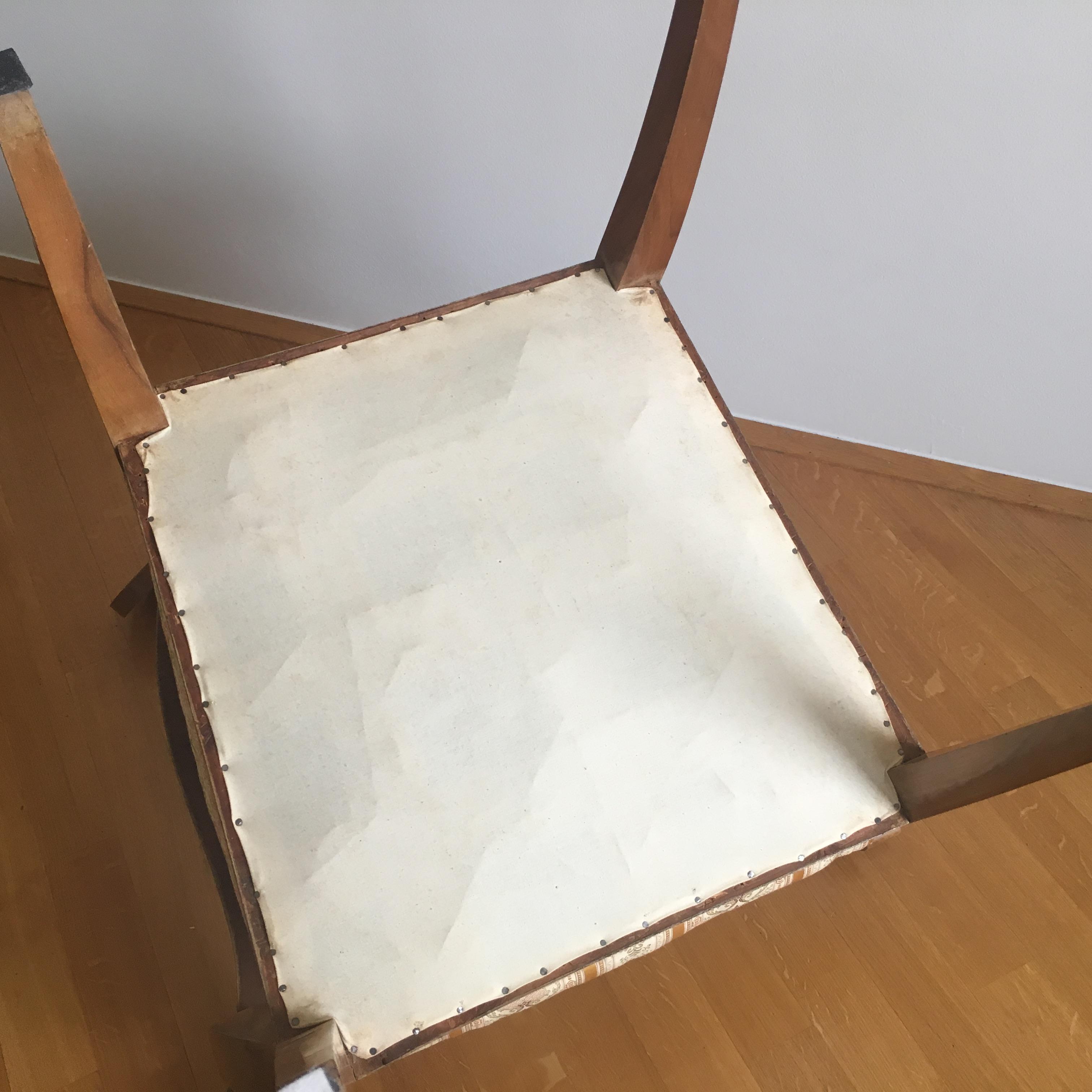 These have been in my family, in Zagreb, Croatia, for at least 50 years. I know nothing about their provenance, and the friend who has gifted them to us is no longer alive. They have been reupholstered about 20 years ago. The seats have springs, not sponge. The construction is strong, no wiggle in joints. They are still in my flat in Zagreb at this time. They are not suited for the space and use, so I am interested in selling them. I would be greteful for any information or educated guesses as to their value, likely provenance, and possible venues for selling them.