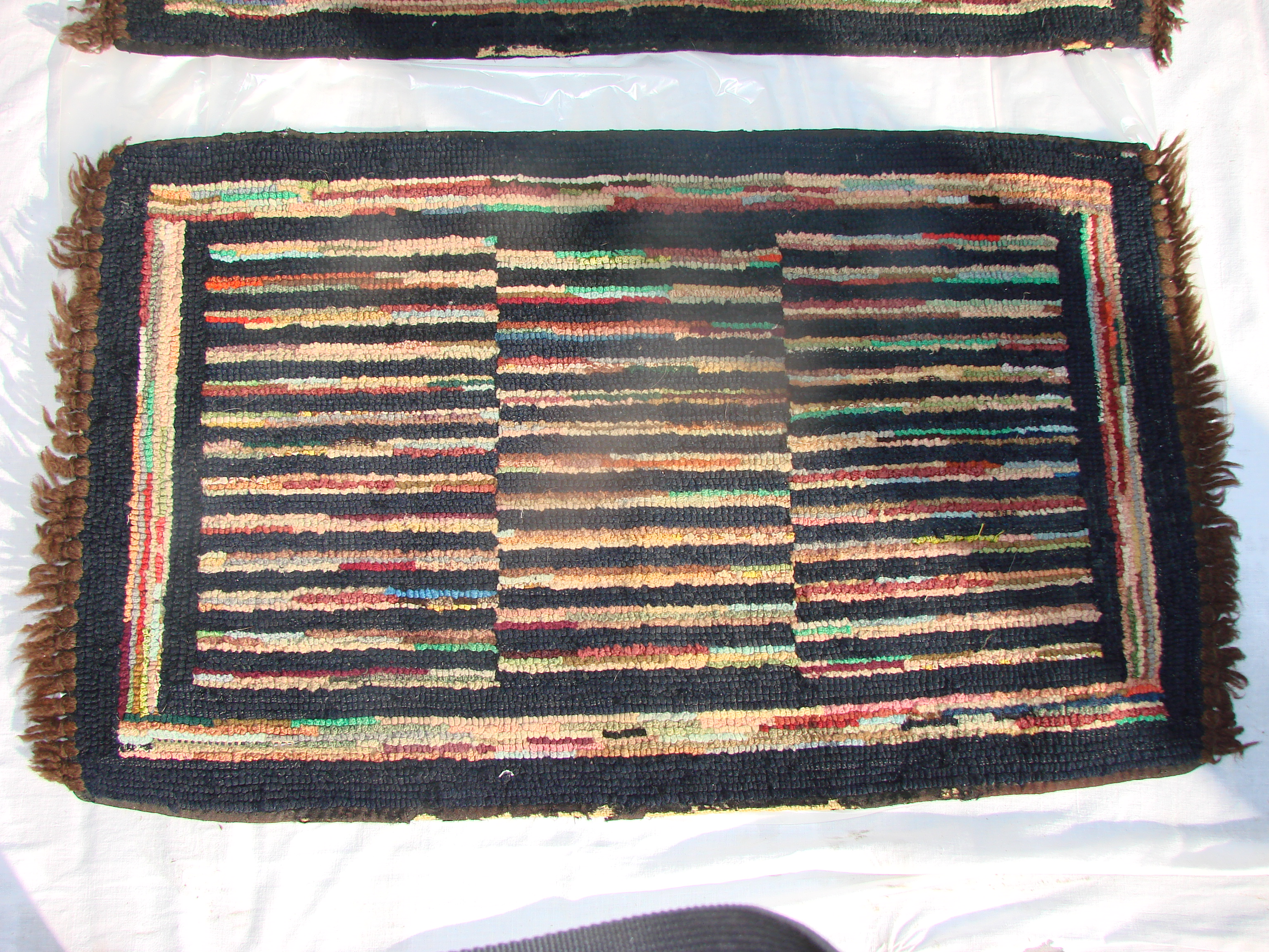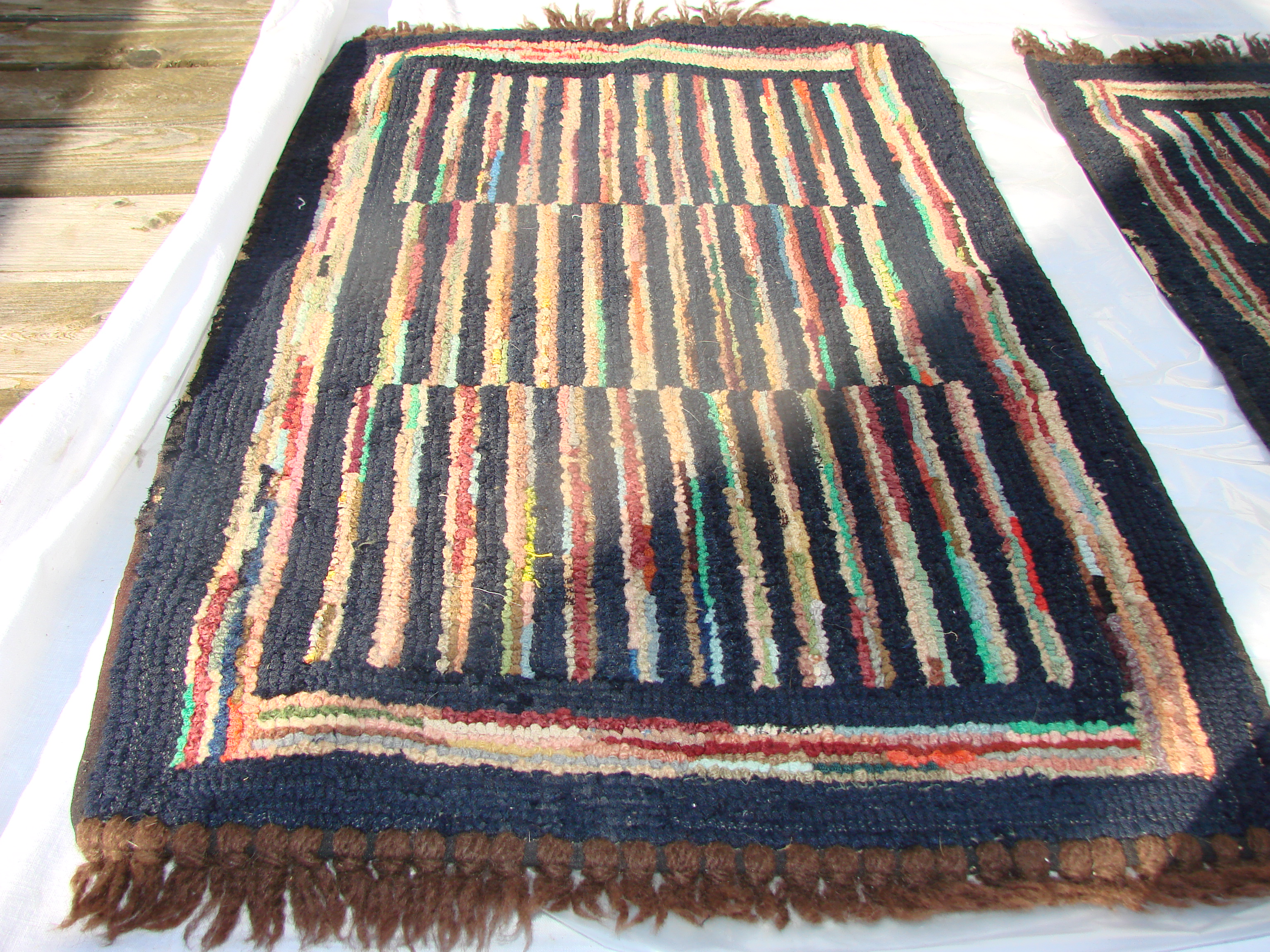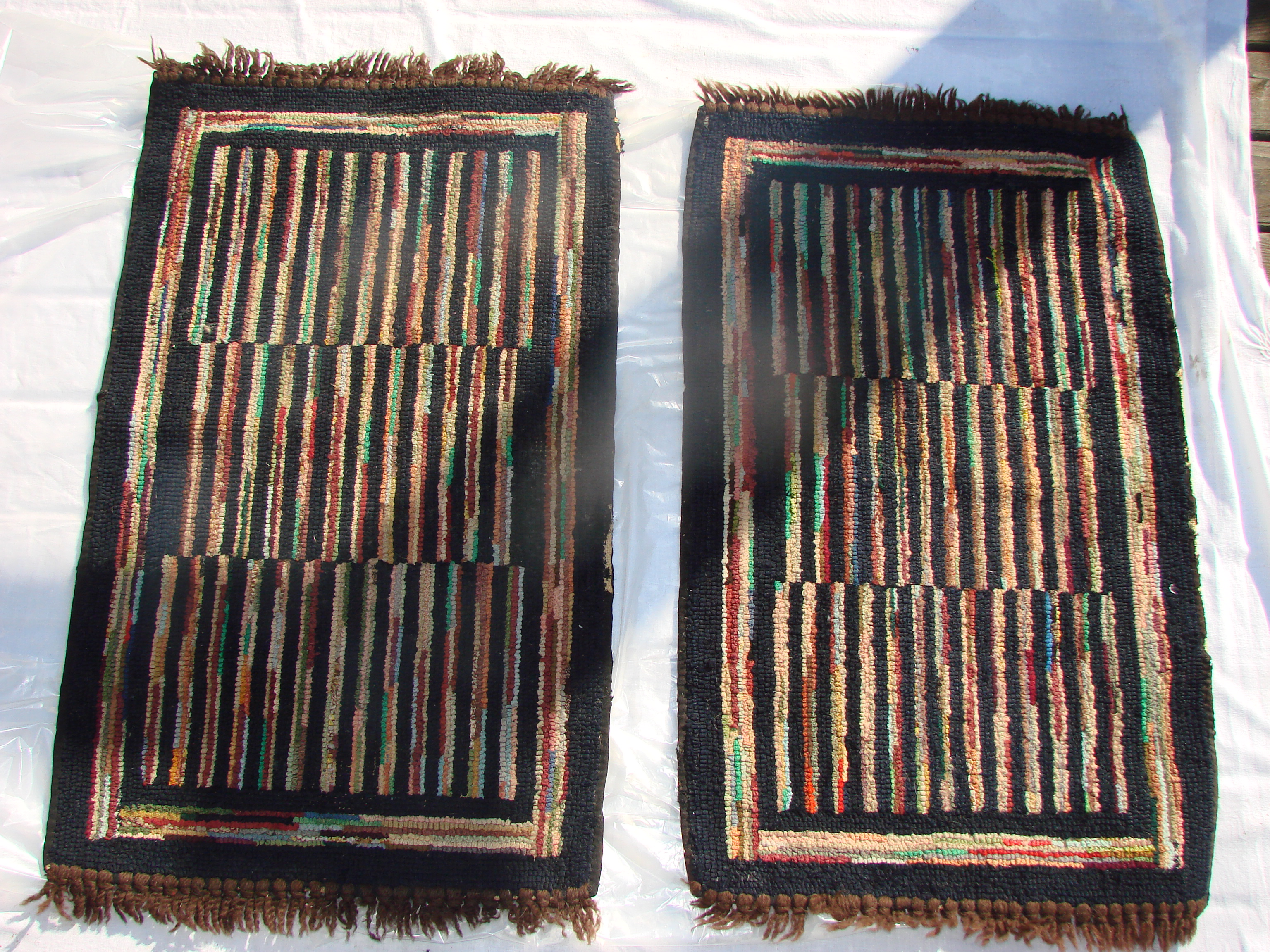 Pair of gorgeous and unique, one of a kind, hand-hooked mats MADE FROM LEFT OVER AND SCRAP YARN !