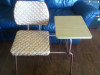 Red uphostered retro armchairs with chunky grey pinstripe. Legs are made of wood with brass halfway down and either plastic or bakelite feet. Back cushion is deep buttoned. Back cushion is fixed and seat cushion is removable. I can't find any chairs the same anywhere on the net, have been researching for well over a week.