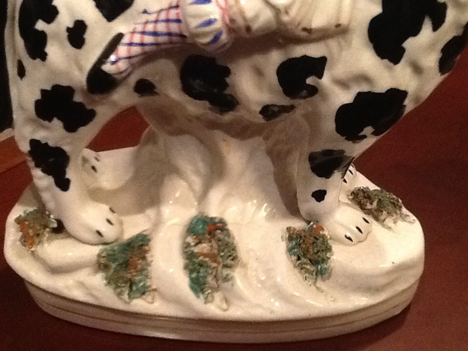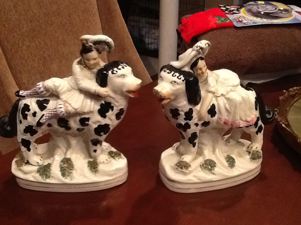 Pair of dogs 8" high came with grandparents from Holland over 90 years ago. Was told they were valuable. If not from Holland then europe. No printed markings except a small "p" or partial "R" stamped in one and maybe an "x" in the other.