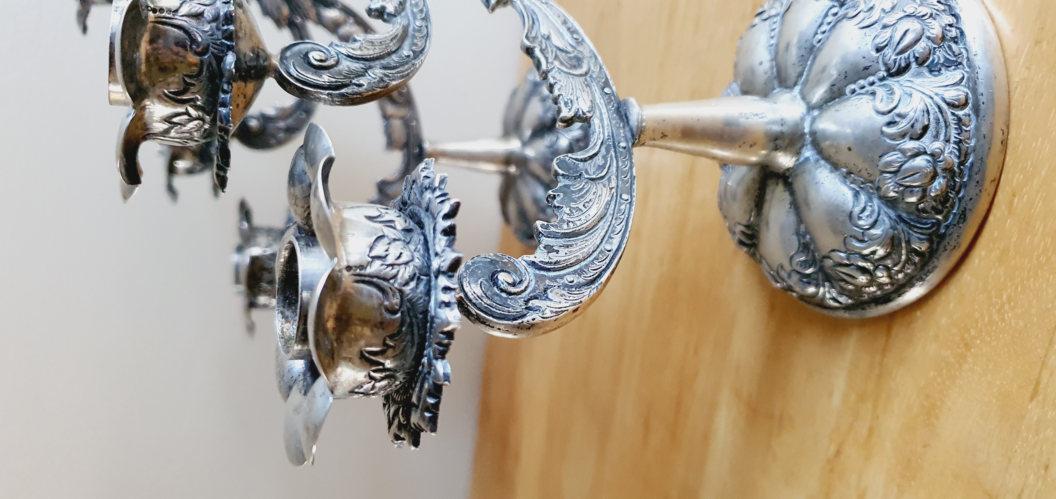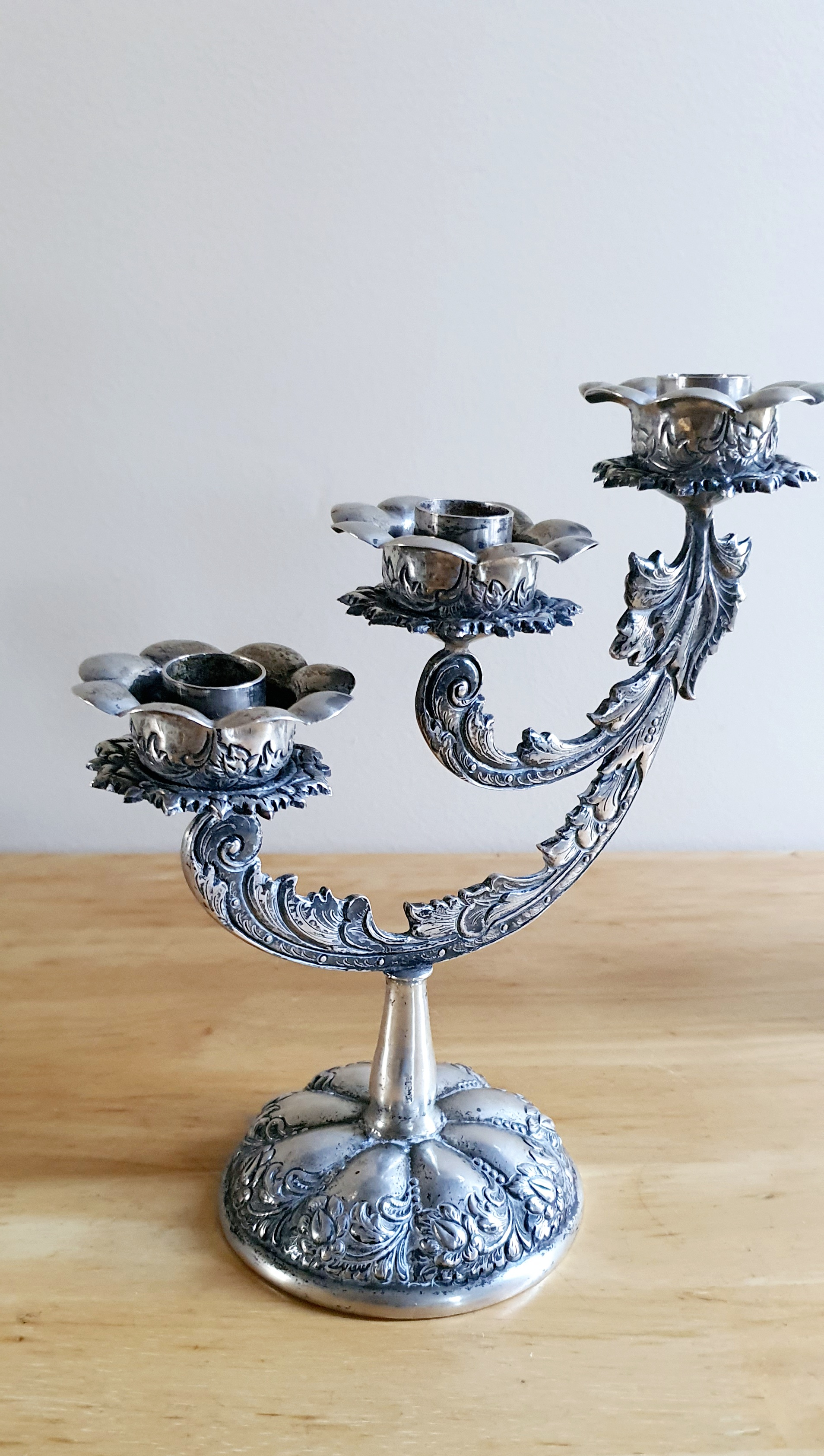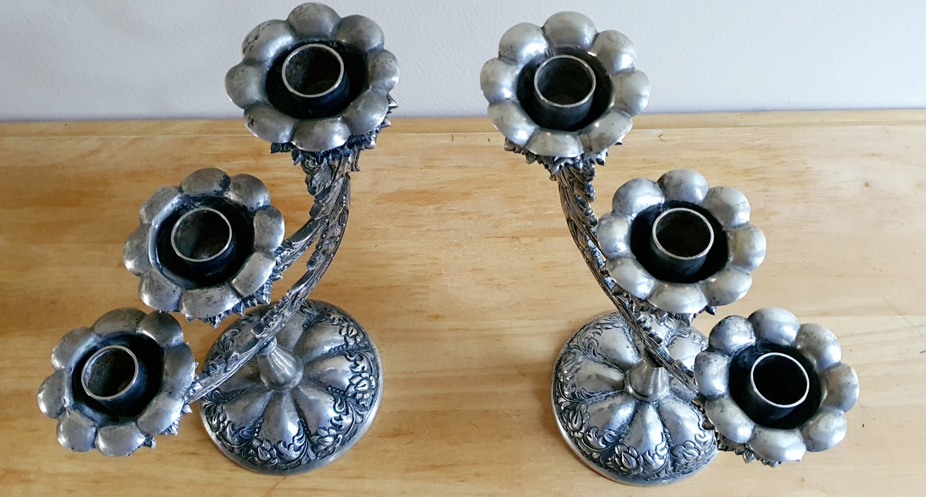 Difficulty finding anything similar. Individual petals around top of all candle holders appears to be unique. Base of holders is also somewhat unique and hard to match online.