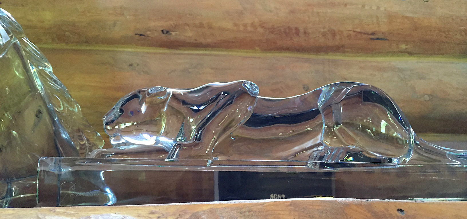 Baccarat crouching/stalking Panther. 20" long X 5.5" high X 5" wide
