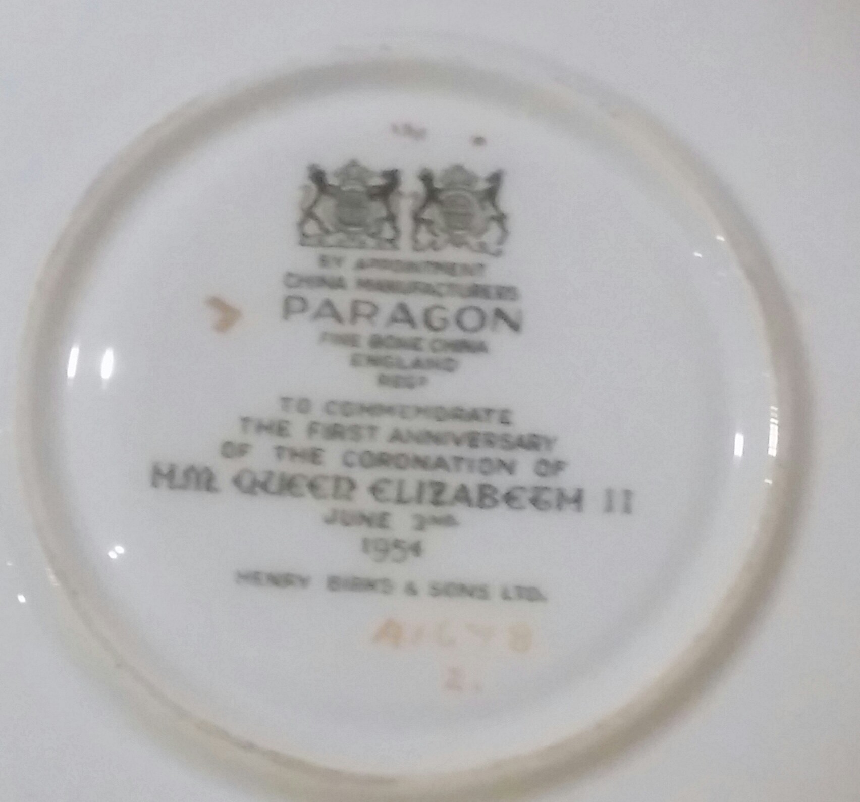 Commemorates the 1st anniversary of the coronation of Queen Elizabeth II. Date under mark June 2nd 1954. Henry Birks & Sons LTD.