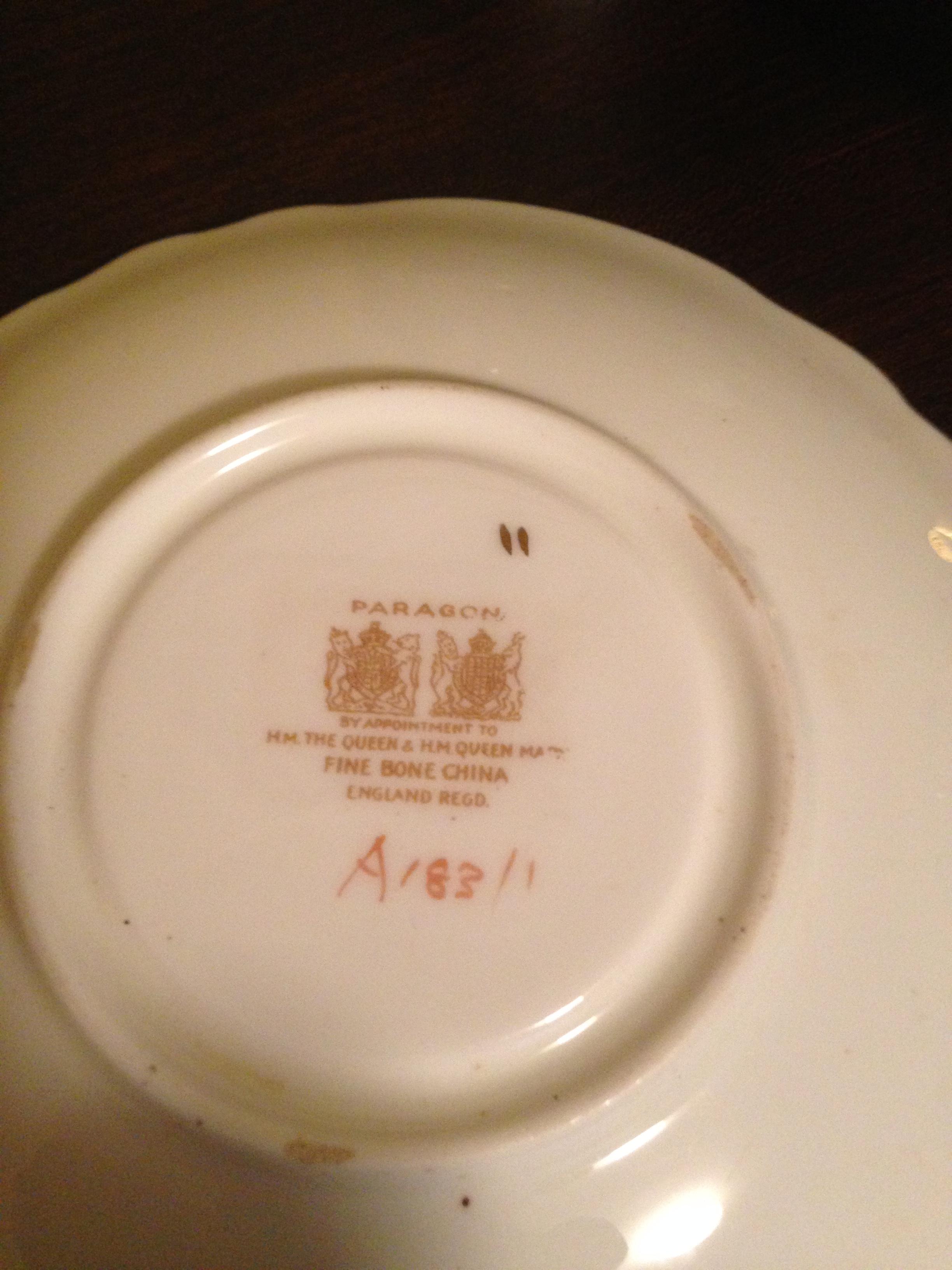 Paragon by Appointment to The Queen & H.M Queen Mary. Fine Bone China England REGD