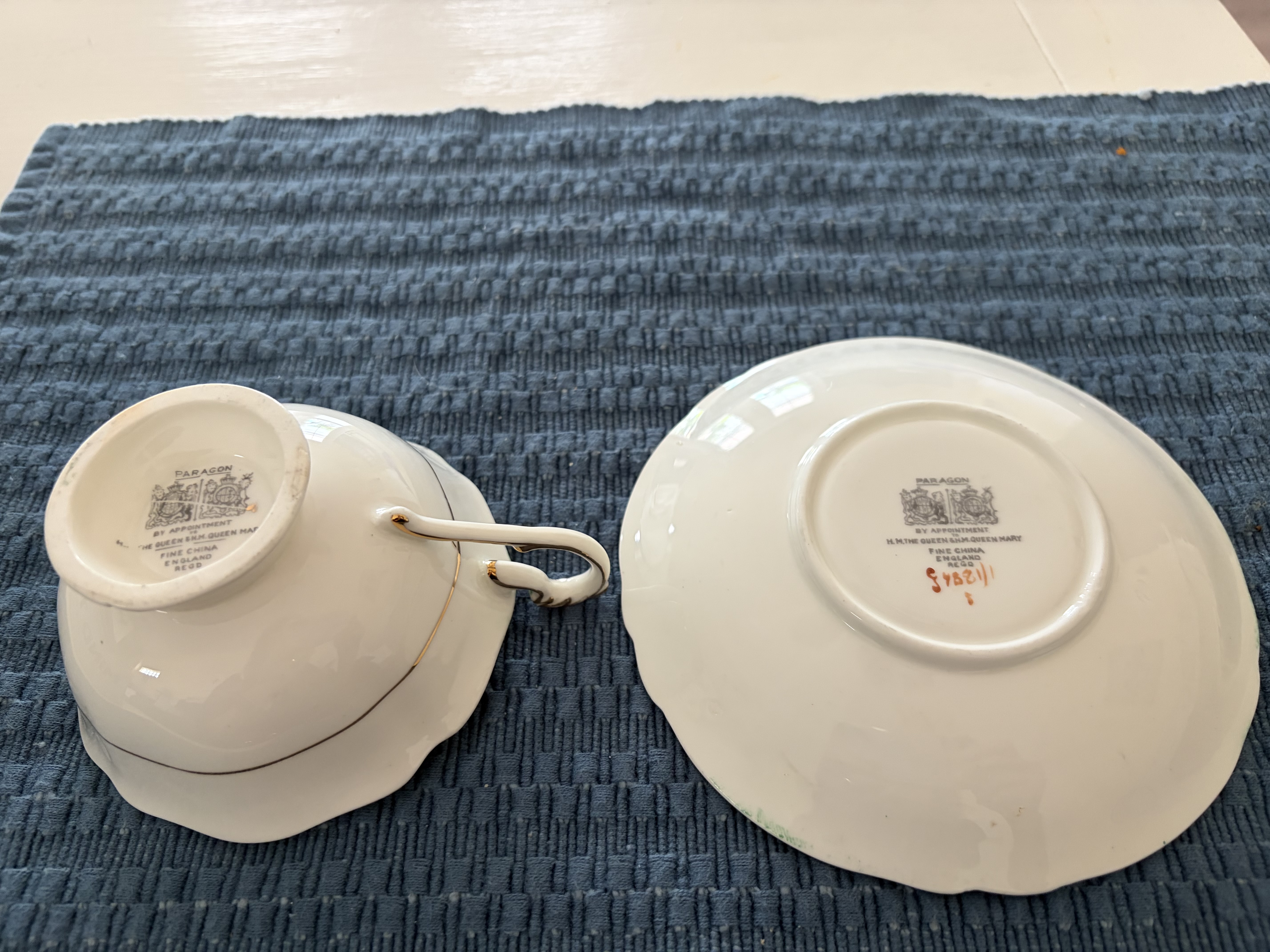 Paragon Tea Cup and Saucer. Made by Paragon. Dating to c. 1920-1940. Materials: Fine china. Estimated value: $25 – $70. Condition: Very Good. The market for fine china remains stable with moderate demand for pieces from recognized makers.
