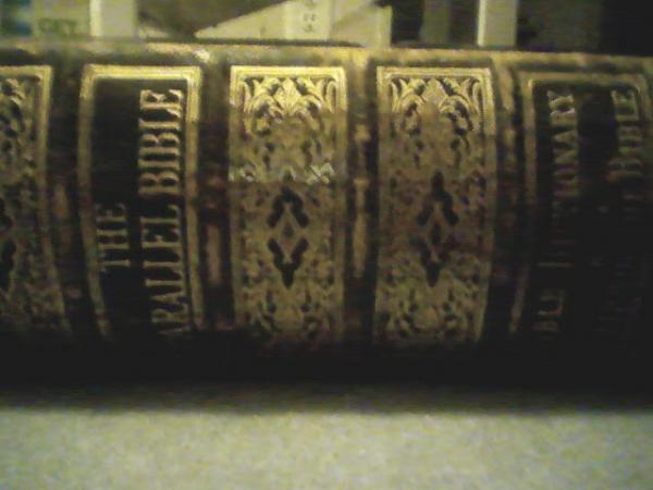 Golden cover on both sides, parallel bible, bible dictionary, and cities of the bible. Pictures should be somewere on this page (couldn't figure out how to get the pictures to go here). Was unable to find any dates in book able to show age. If I find more information on it I will post immidiatly.