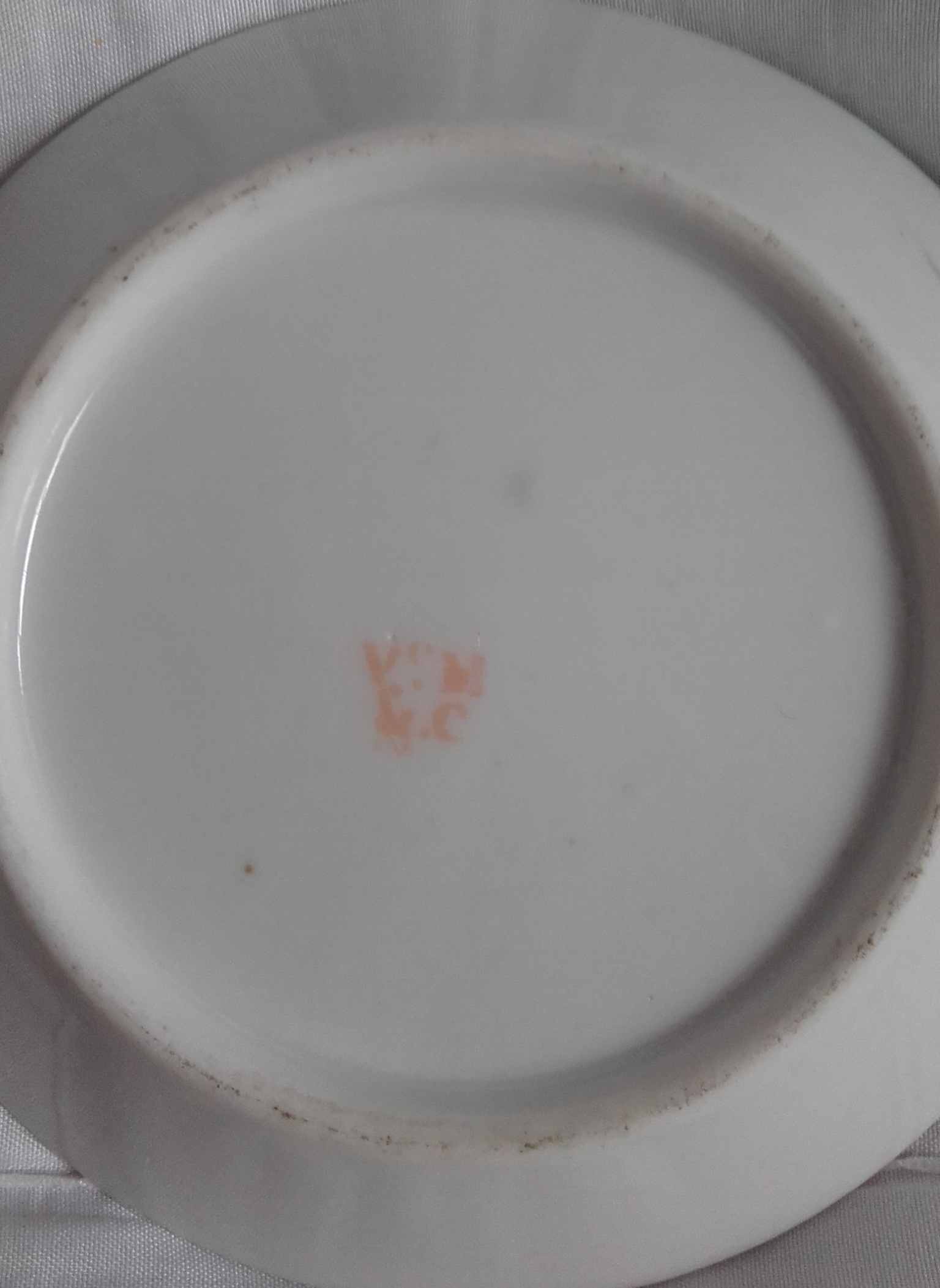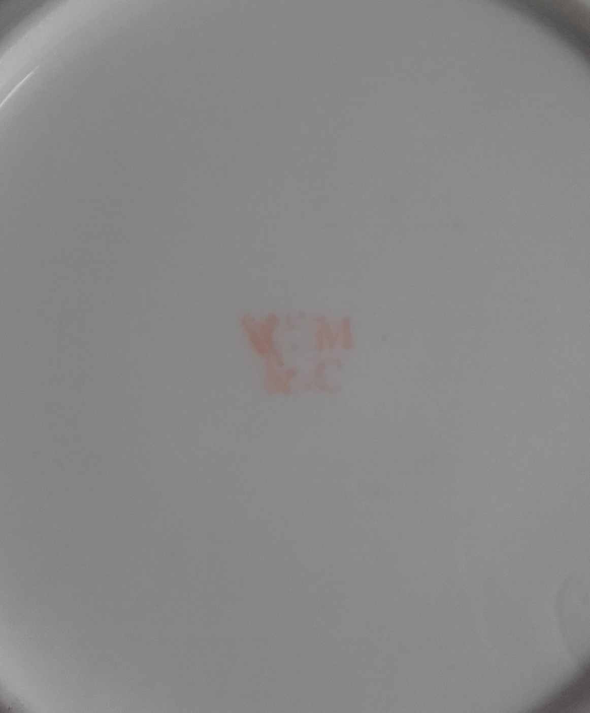 I’m trying to get a valuation on these saucers. I’m hoping somebody may recognize this Paris Porcelain factory mark? The mark is Vᵉ.M (Ve M) on the top then either N.C, R.C or M.C on the bottom.