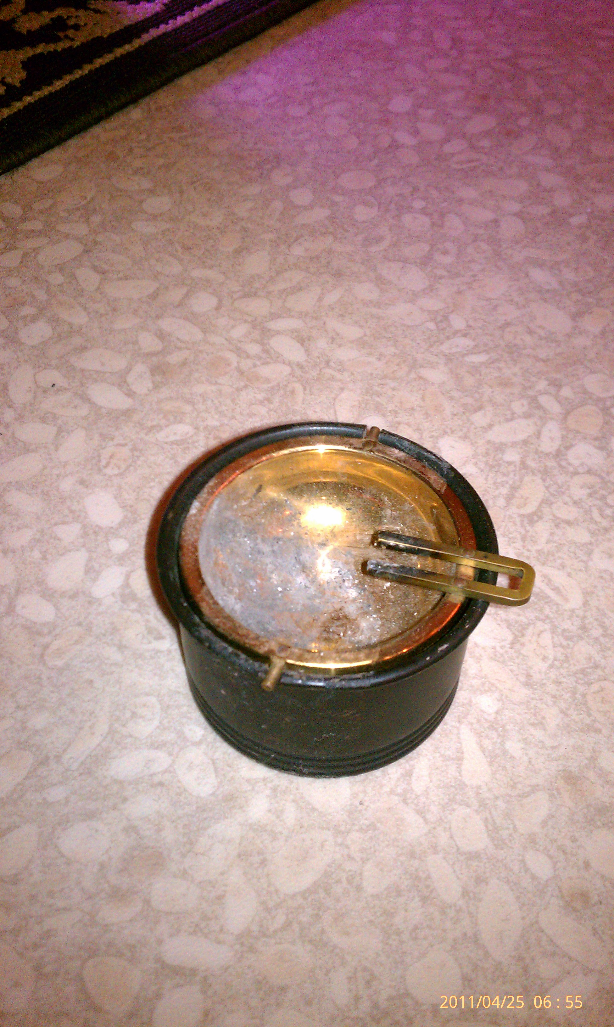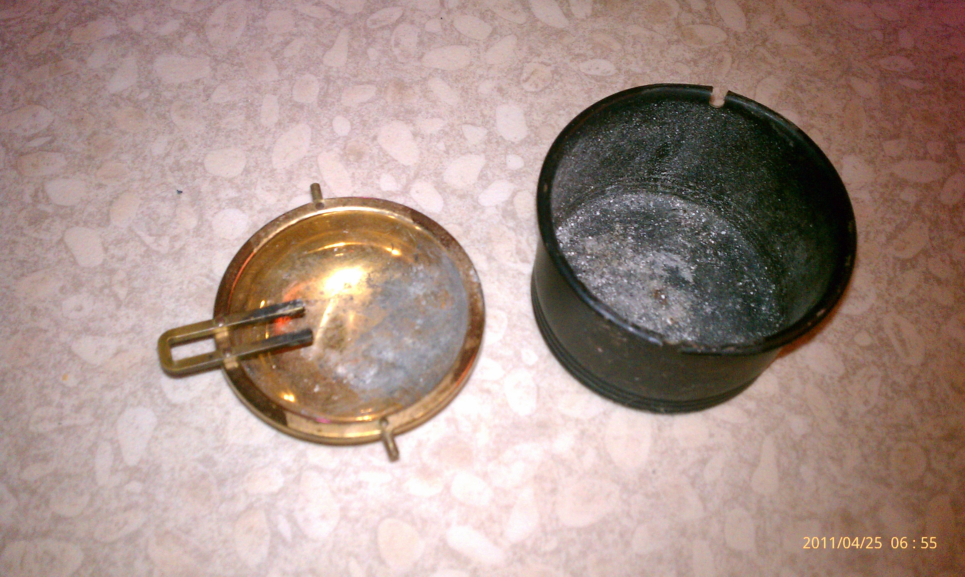 Found this ash tray at a thrift store. It is very unique. It flips over so the ashes/cigarette goes into the bottom "can" and is out of sight so no ashes are left out to see.